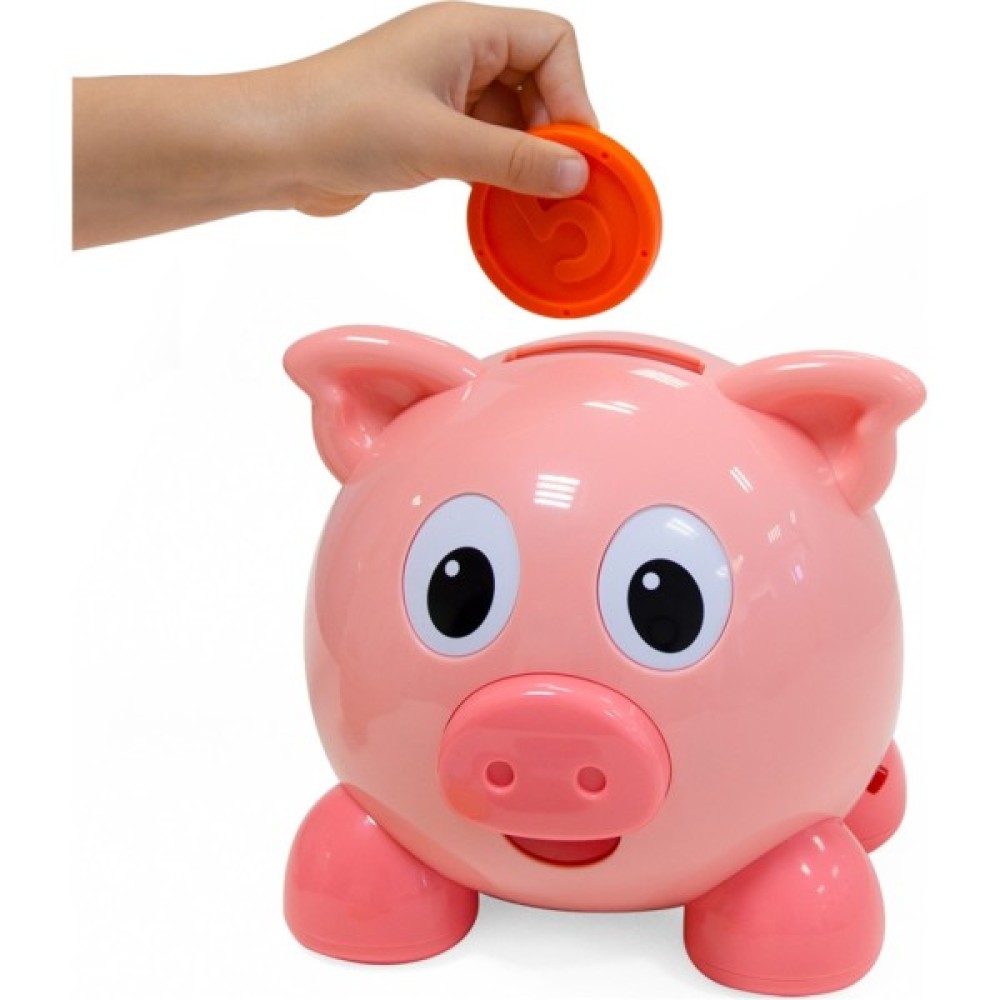 • Всі різнокольорові монетки зручно зберігати всередині іграшки, а також легко витягати: достатньо відкрити кришку відсіку на задній стороні іграшки.