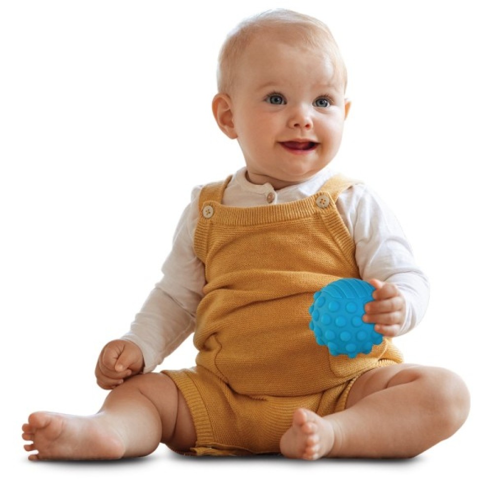 - Кожен м’ячик має унікальну поверхню — від ніжних виступів до м’яких шипів, що стимулюють сенсорні рецептори.