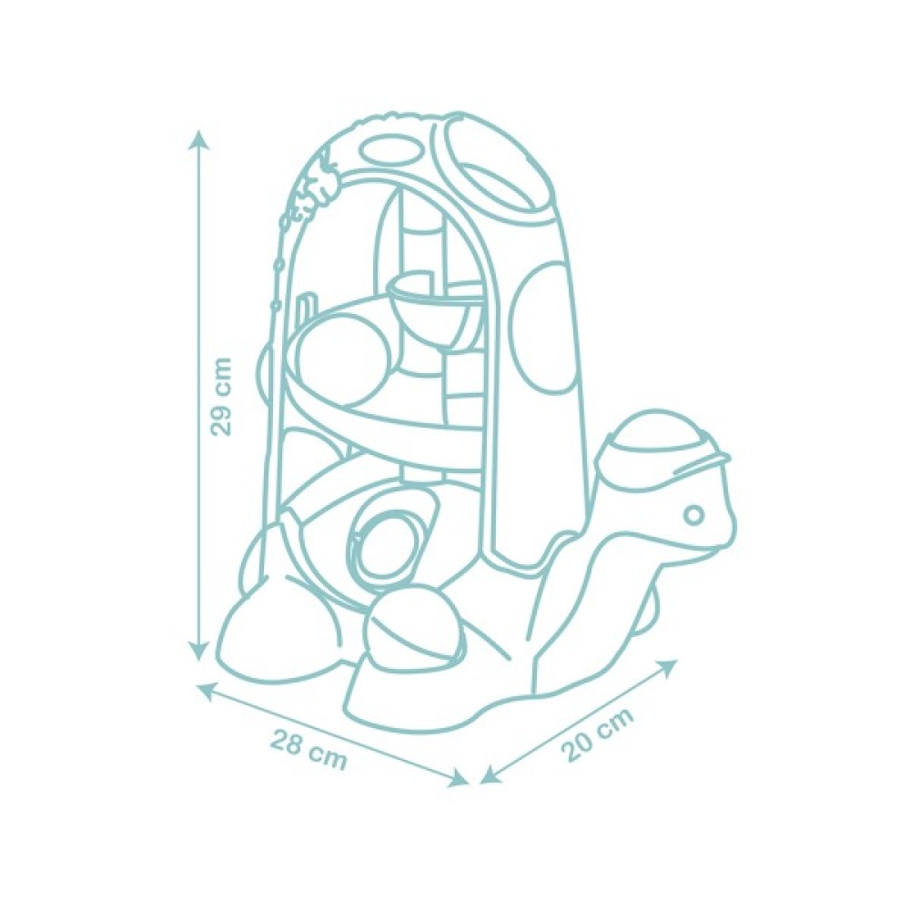 На лапці є місце для зберігання кульки, а позаду черепашки є деталь, що рухається вверх та вниз.