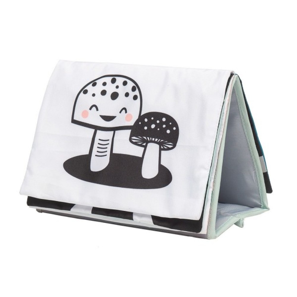 • Сторона 1 — яскраві, контрастні кольори, дитяче безпечне дзеркало та зображення, які допоможуть дитині в розвитку емоційного сприйняття малюка