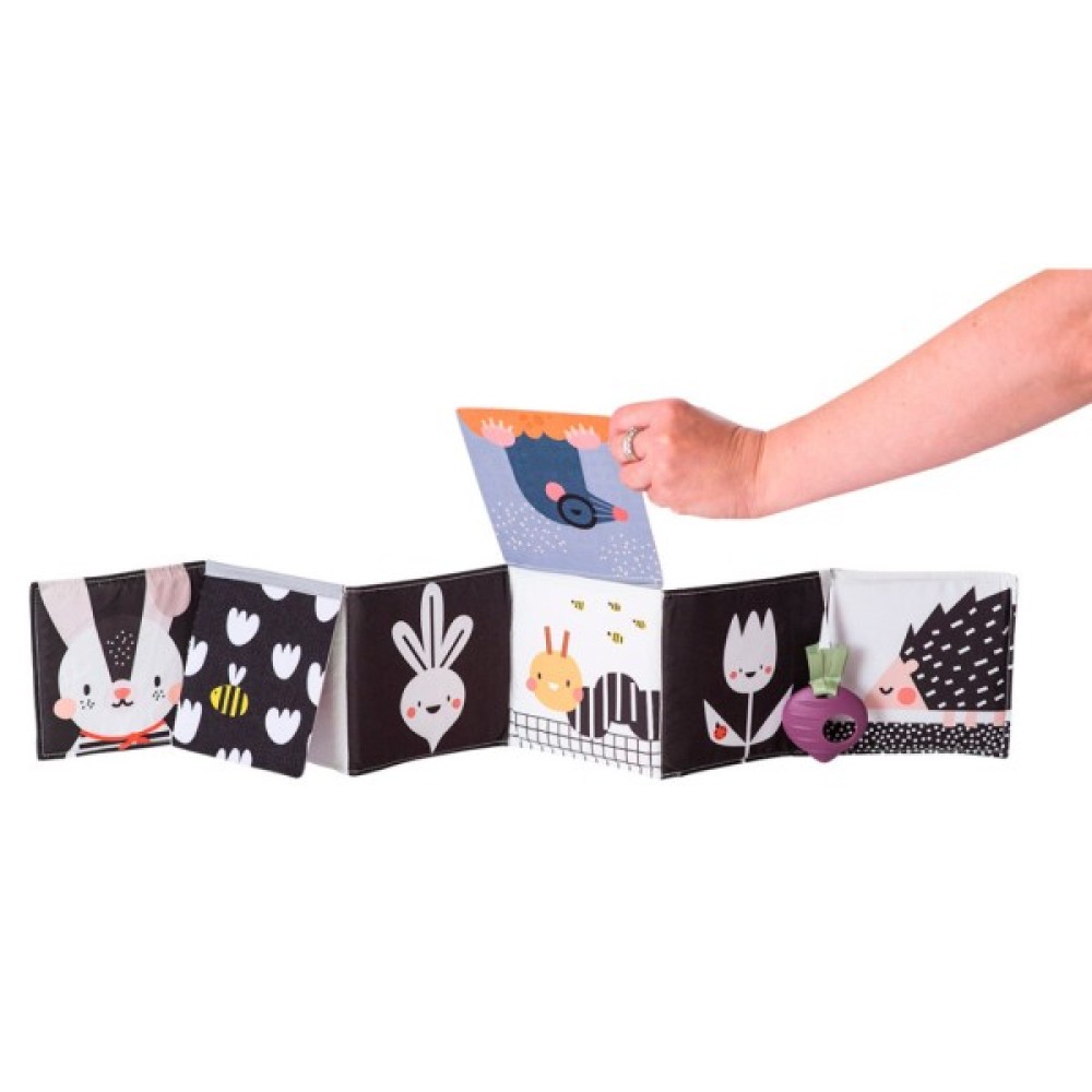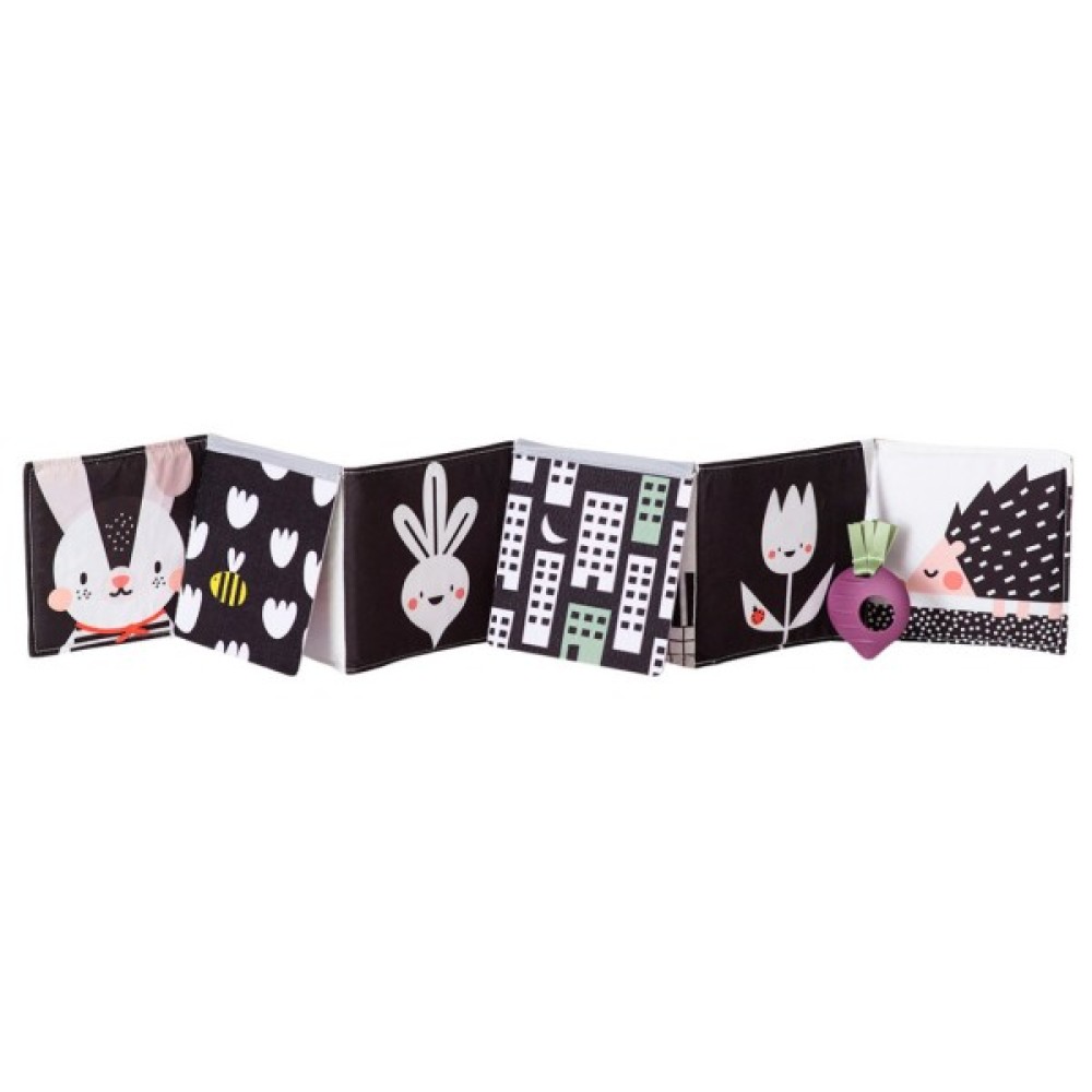 Розвиваюча книжка-розкладушка колекції САДОЧОК У МІСТІ – це 6 м'яких «сторінок», які шарудять, з малюнками та елементами, що розвивають.