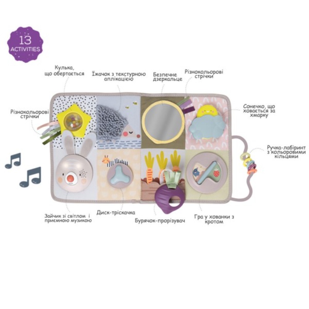 • Музика та світло допоможуть розвинути сенсорне сприйняття малюка, а численні інтерактивні елементи - рухову активність.