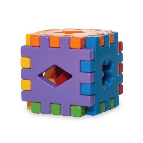 Щоб скласти куб, дитині потрібно з'єднати його стінки, які являють собою 6 різнобарвних елементів. З елементів куба можна також складати інші конструкції. Створення конструкцій дуже корисно для розвитку творчого потенціалу дитини. Елементи гладкі й опуклі з усіх боків, що дуже зручно для маленьких ручок.