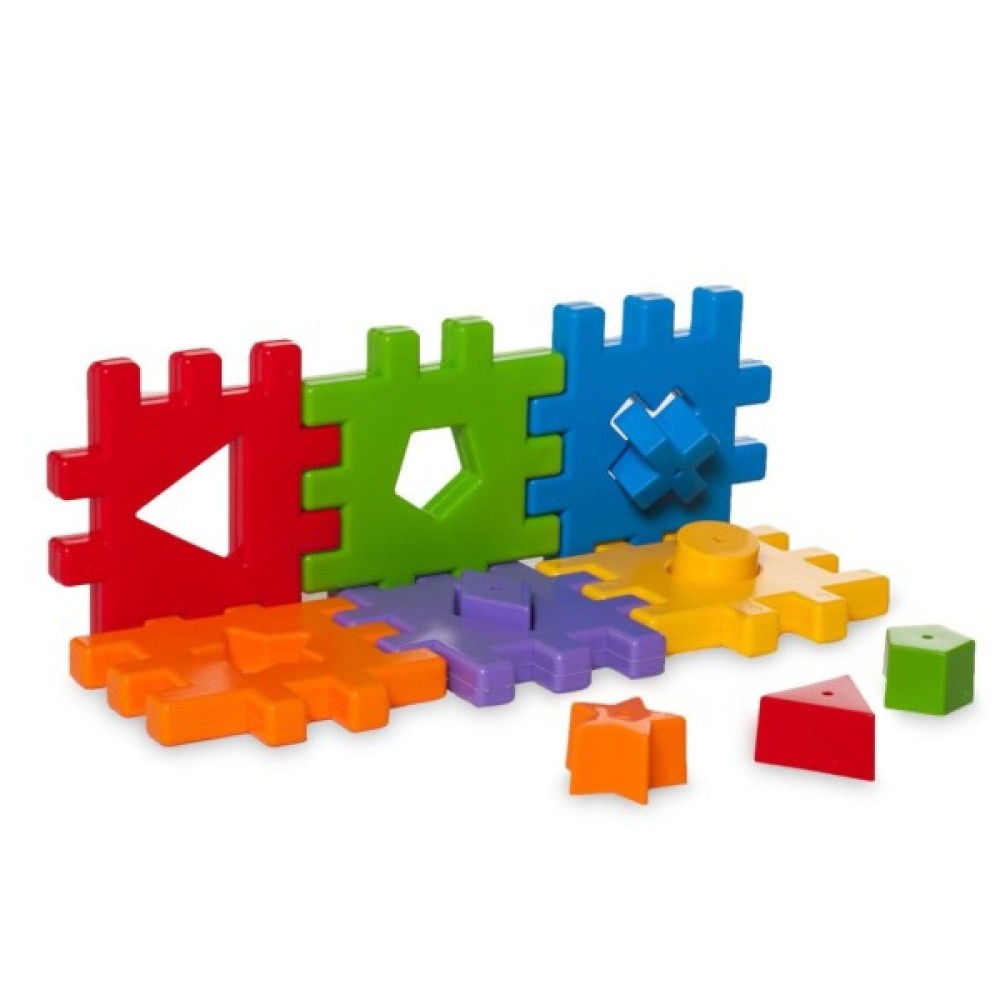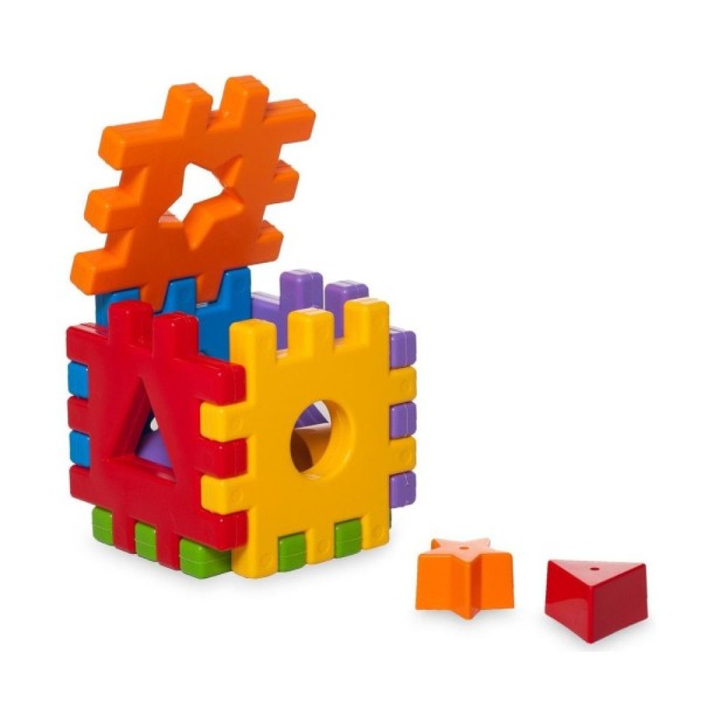 Крім того, у кожному боці куба є фігурний отвір, до якого потрібно підібрати фігурку відповідної форми та проштовхнути її всередину куба. 6 різнобарвних фігурок різної форми входять до комплекту. Добираючи фігурки під отвори, дитина вивчає форми та кольори, вчиться порівнювати й аналізувати, розвиває пам'ять і логіку, окомір, спритність, дрібну моторику та координацію рухів.