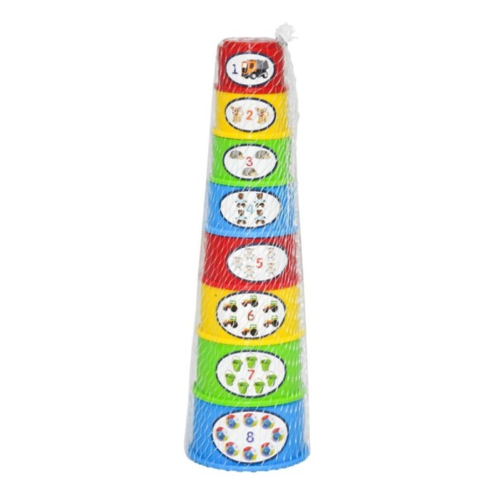 З нею цікаво гратися вдома також вона підходить для гри з піском або водою. Завдяки різним розмірам можна зібрати піраміду від більшого елемента до меншого, або навпаки на дні формочок є отвір, можна використовувати як сито.