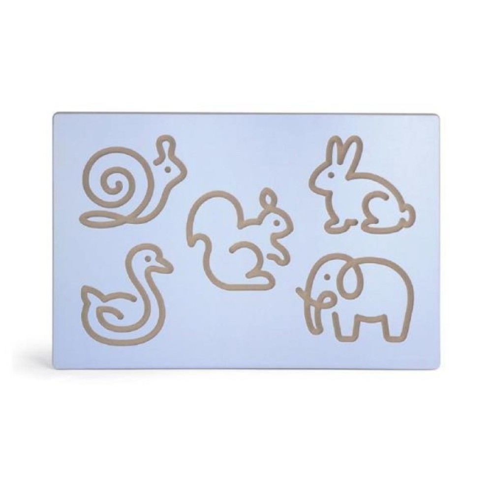 Дошка для освоєння малювання тварин із виїмками у вигляді силуетів різних тварин. Розвиток: уважність, зорово-моторна координація, мислення, когнітивні навички. Рекомендовано для дитячих садків, центрів розвитку і шкіл.