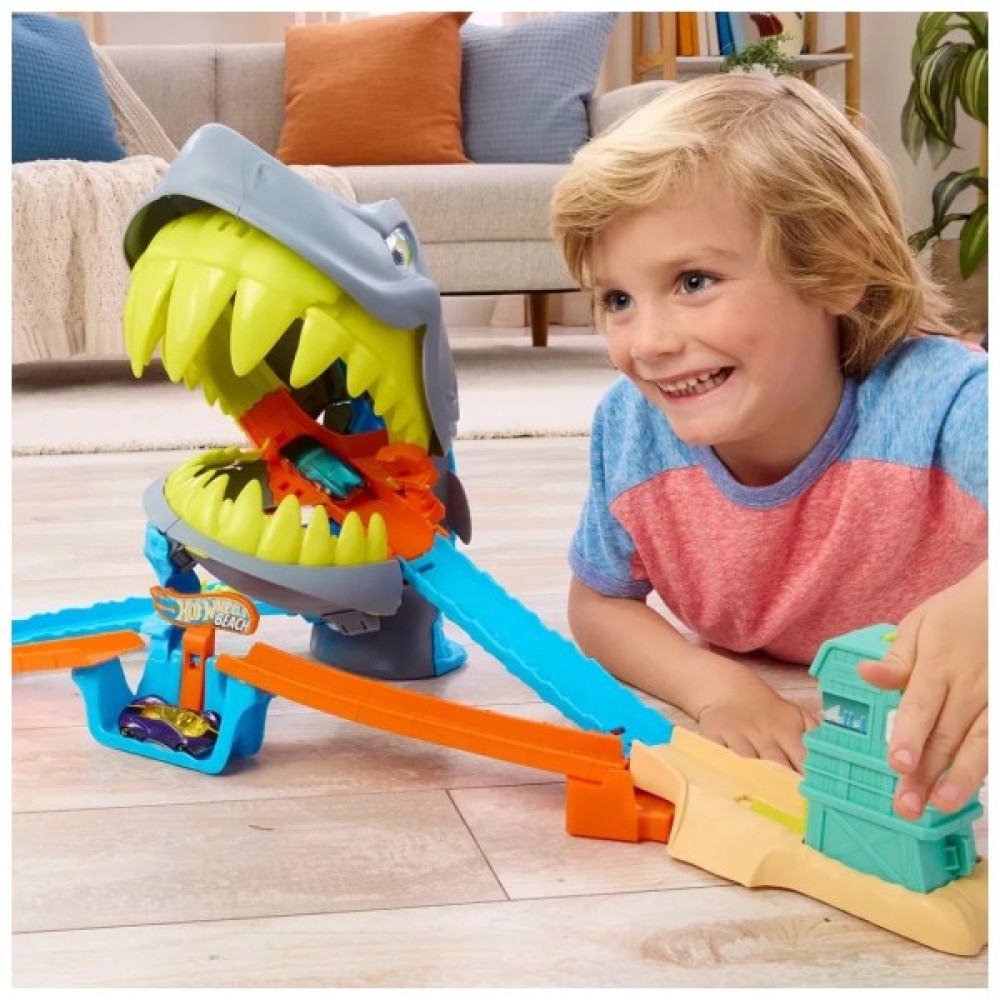 Діти запускають машинки Hot Wheels просто в пащу гігантської акули та виконують видовищні трюки, щоб перемогти та вирушити назустріч новим пригодам.