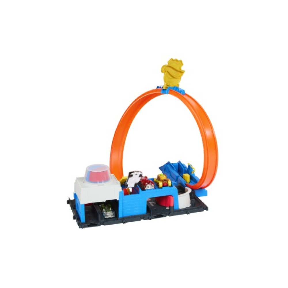 Перш ніж вирушати в дорогу, завантажте іграшкову поліцейську машинку масштабом 1:64 в пускову установку, де можна навіть заправитися завдяки заправному шлангу. Перемістивши петлю-доріжку на один із чотирьох з'їздів, ви обираєте, в яку пригоду вирушить машинка.