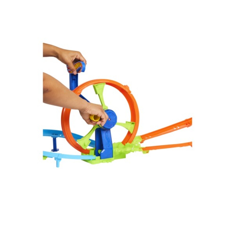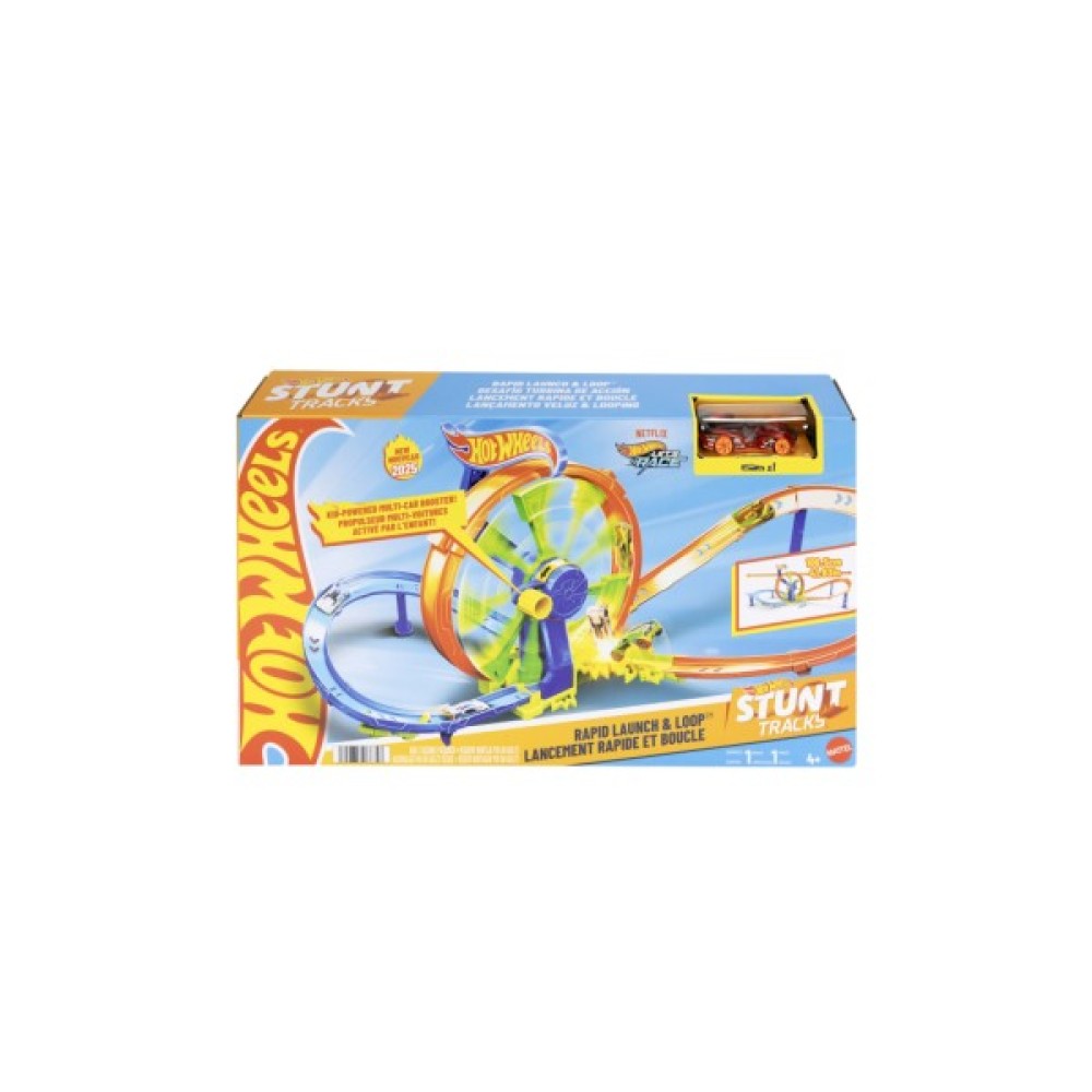 Досліджуйте силу та швидкість з неймовірно динамічним ігровим набором Hot Wheels Stunt tracks Перегони на віражах.