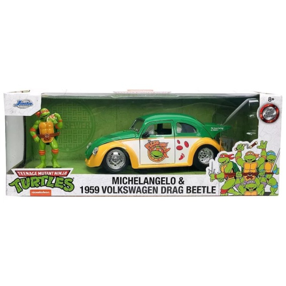 Машина, Jada, металева, ЧерепашкиНіндзя, Фольксваген, Бітл, 1959, з, фігуркою, Мікеланджело, 124, 253285002