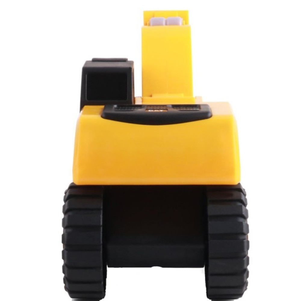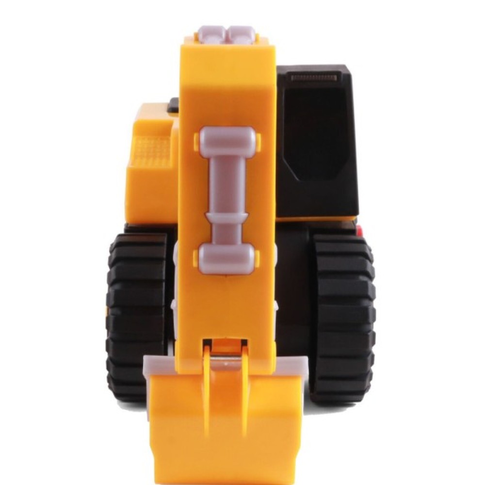Ви готові гуркотіти?! Увімкніть запалювання автомобіля натисненням верхньої кнопки на корпусі, або піднявши ківш екскаватора. Решта кнопки активують реалістичні звуки — двигун, що працює, подача заднього ходу і гідравлічні звуки, миготливі вогні та вібрацію двигуна, що працює.