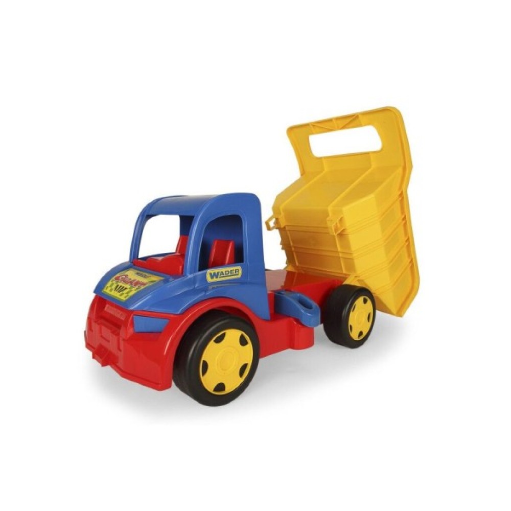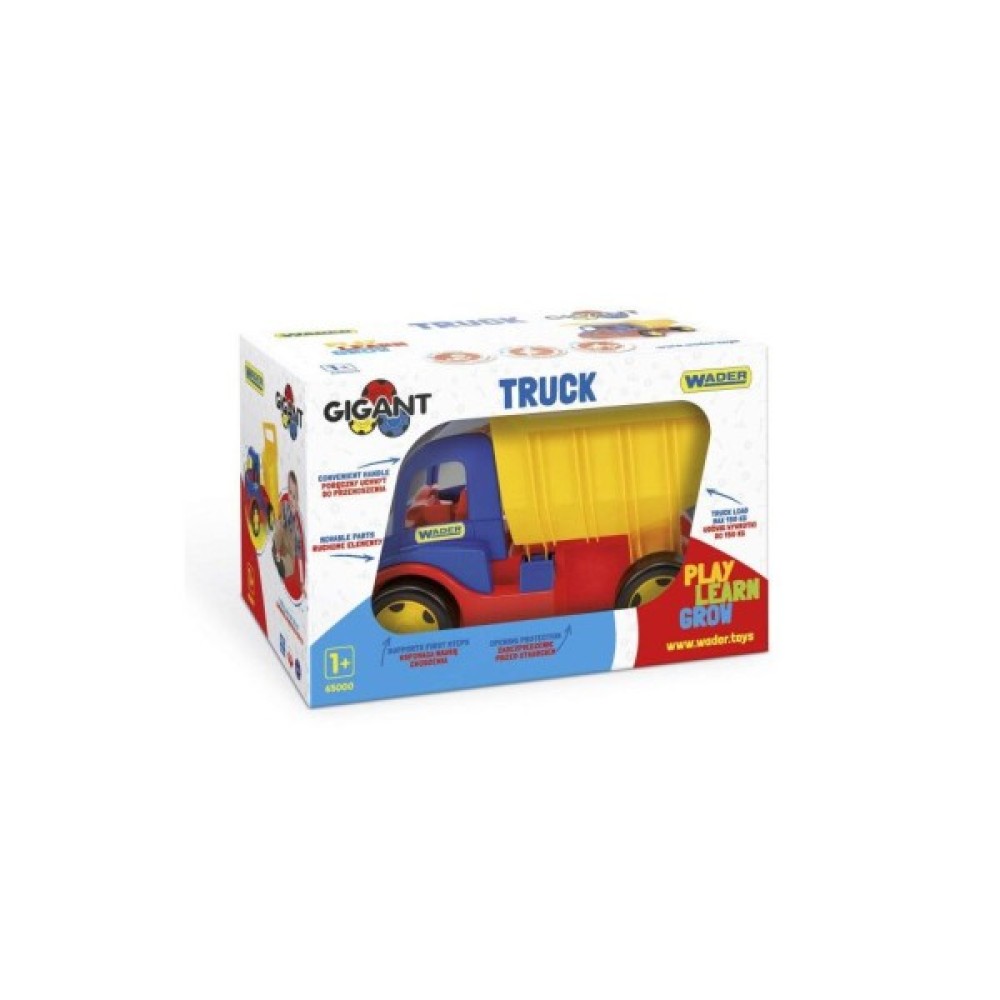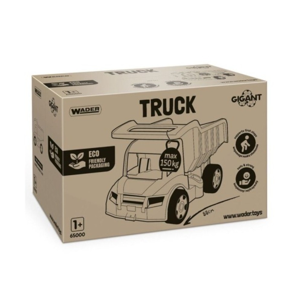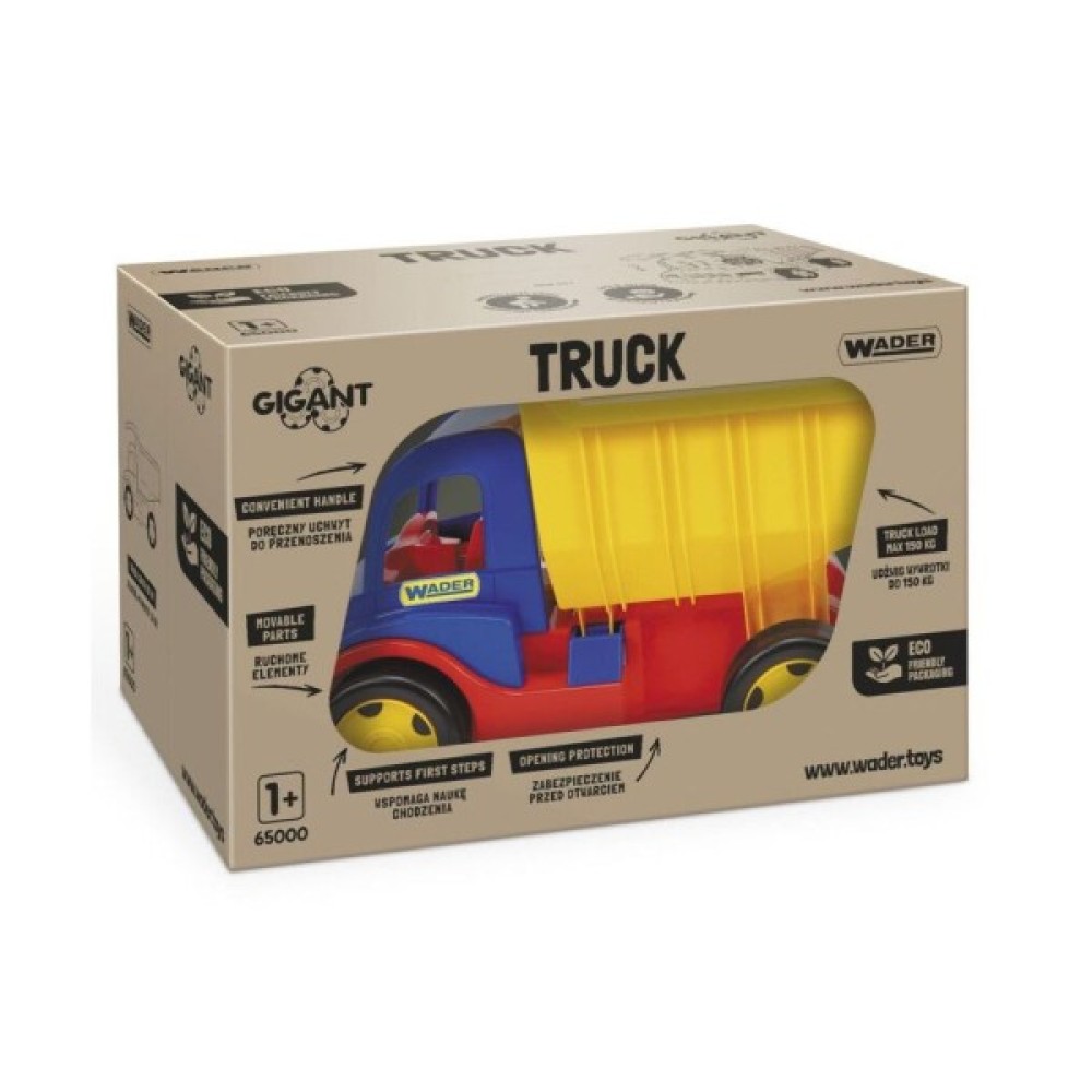 Велика іграшкова вантажівка Wader Гігант має надійну конструкцію, завдяки цьому грати з нею можна упродовж багатьох років. Машинка складена тільки з міцних деталей та має закруглені краї для максимальної безпеки дитини. З нею можна грати як вдома, так і в саду або в пісочниці.
