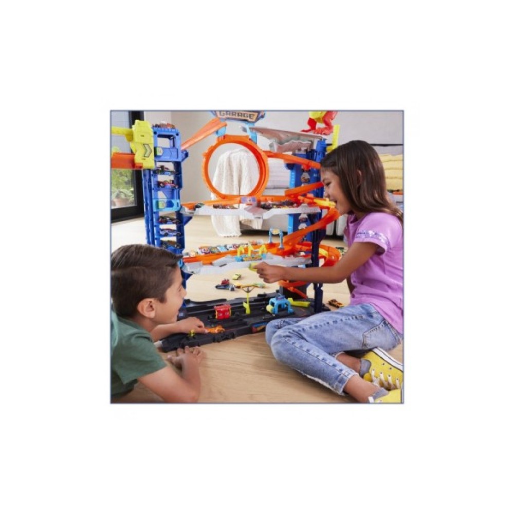 До набору входять дві машинки Hot Wheels. У ньому достатньо місця для паркування більш ніж 50 іграшкових машинок у масштабі 1:64. Також він поєднується з іншими наборами, завдяки чому діти можуть побудувати власне місто Hot Wheels.