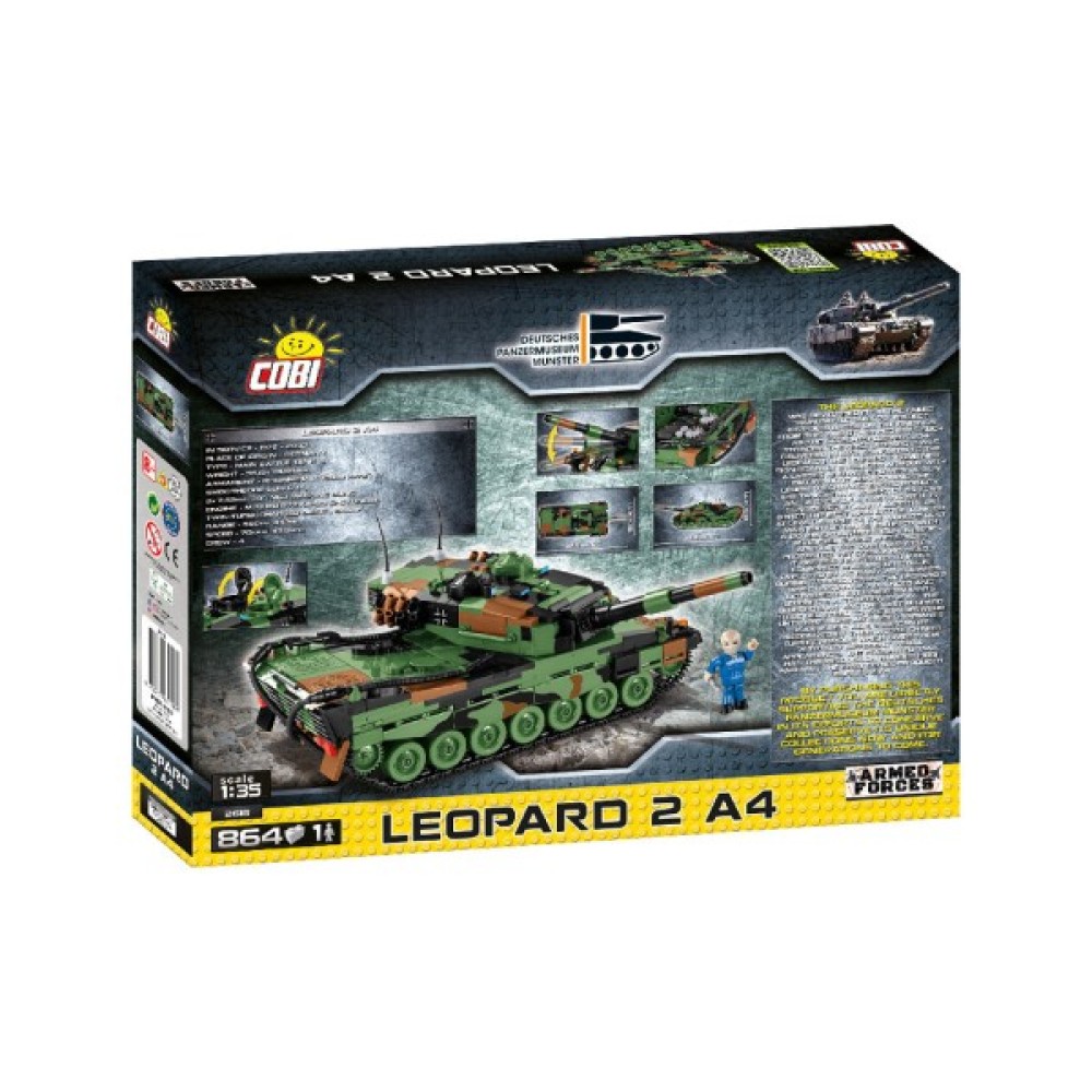 Конструктор Cobi "Танк Леопард 2" пропонує захоплюючу можливість відчути себе творцем одного з найвідоміших бойових танків світу. З 864 деталями цей автоконструктор подарує годинник захопливого складання та гри. Модель створена на базі німецького танка Leopard 2 A4, який належить до третього покоління та замінив легендарний Leopard 1. Його використовують у багатьох країнах світу, від Німеччини до Сінгапуру, підтверджуючи його надійність та ефективність.