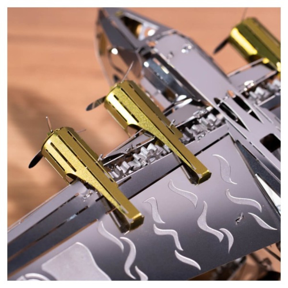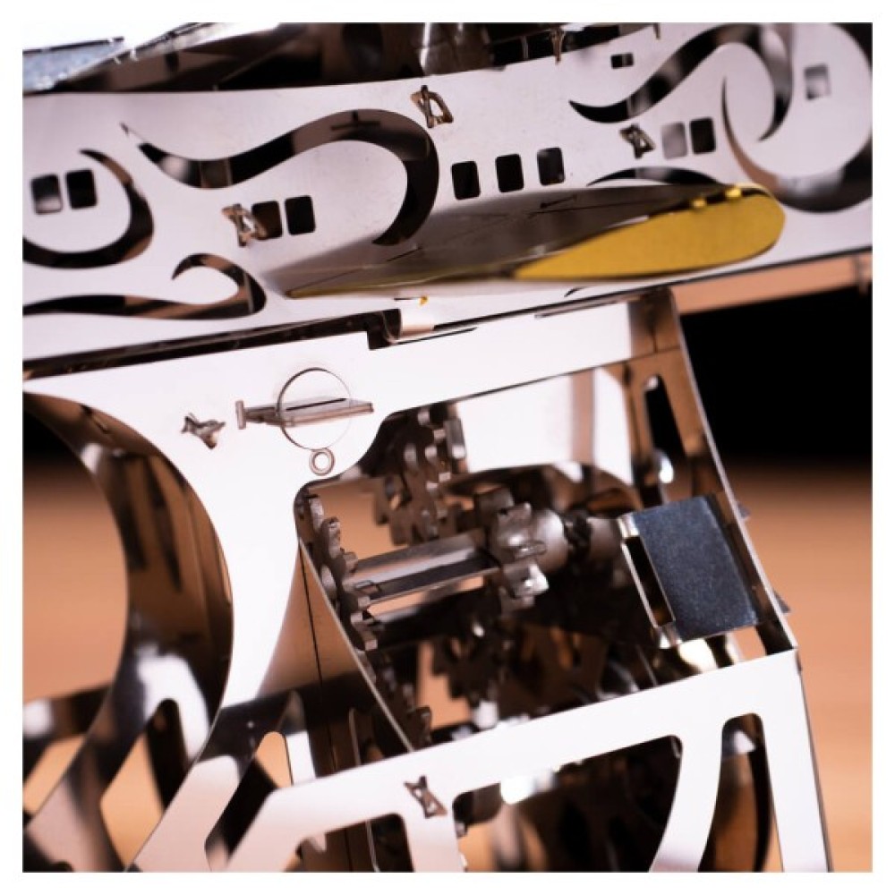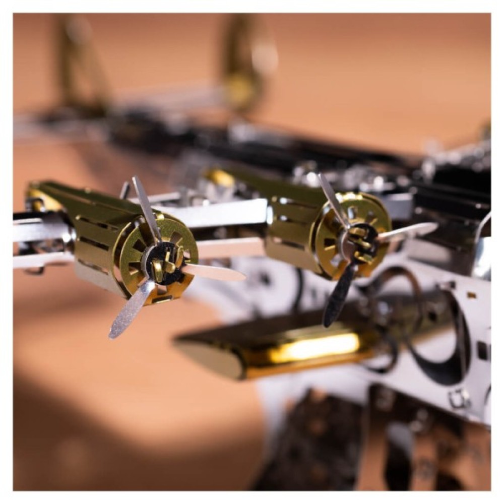 Модель складається з 124 металевих деталей, які збираються у вражаючу конструкцію розміром 20.5х29х10.5 см. Завдяки високій якості матеріалів та детальної проробки кожної деталі, ви отримаєте задоволення від процесу складання. Це не просто конструктор, це справжнє випробування на кмітливість та терпіння, підходить для дітей віком від 14 років, незалежно від статі.
