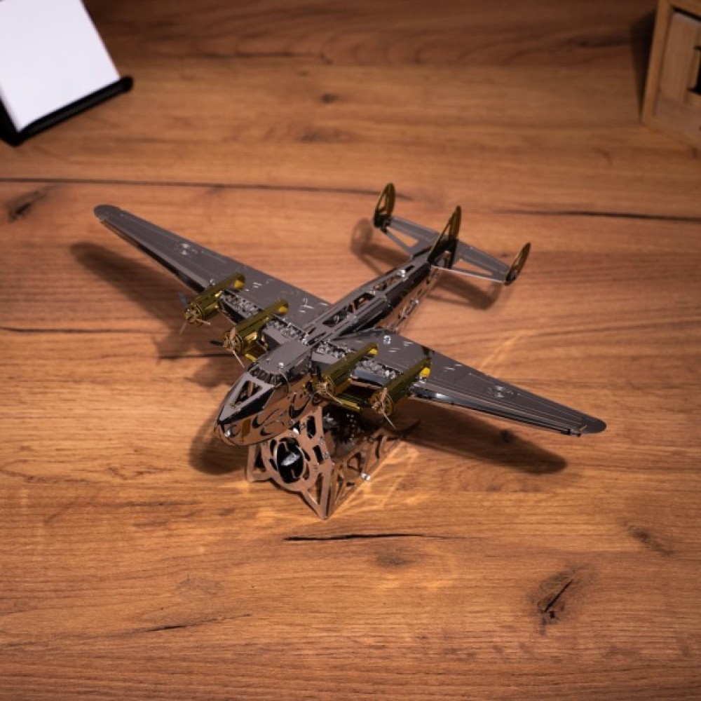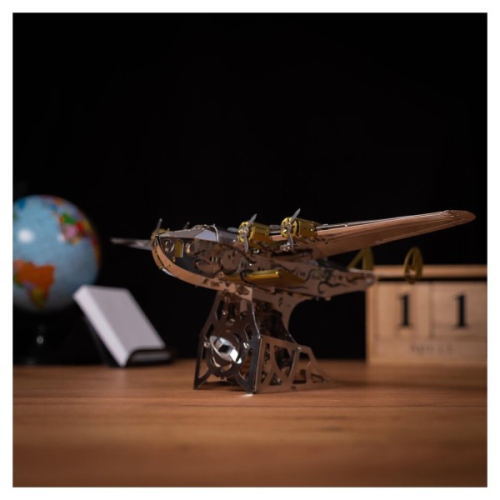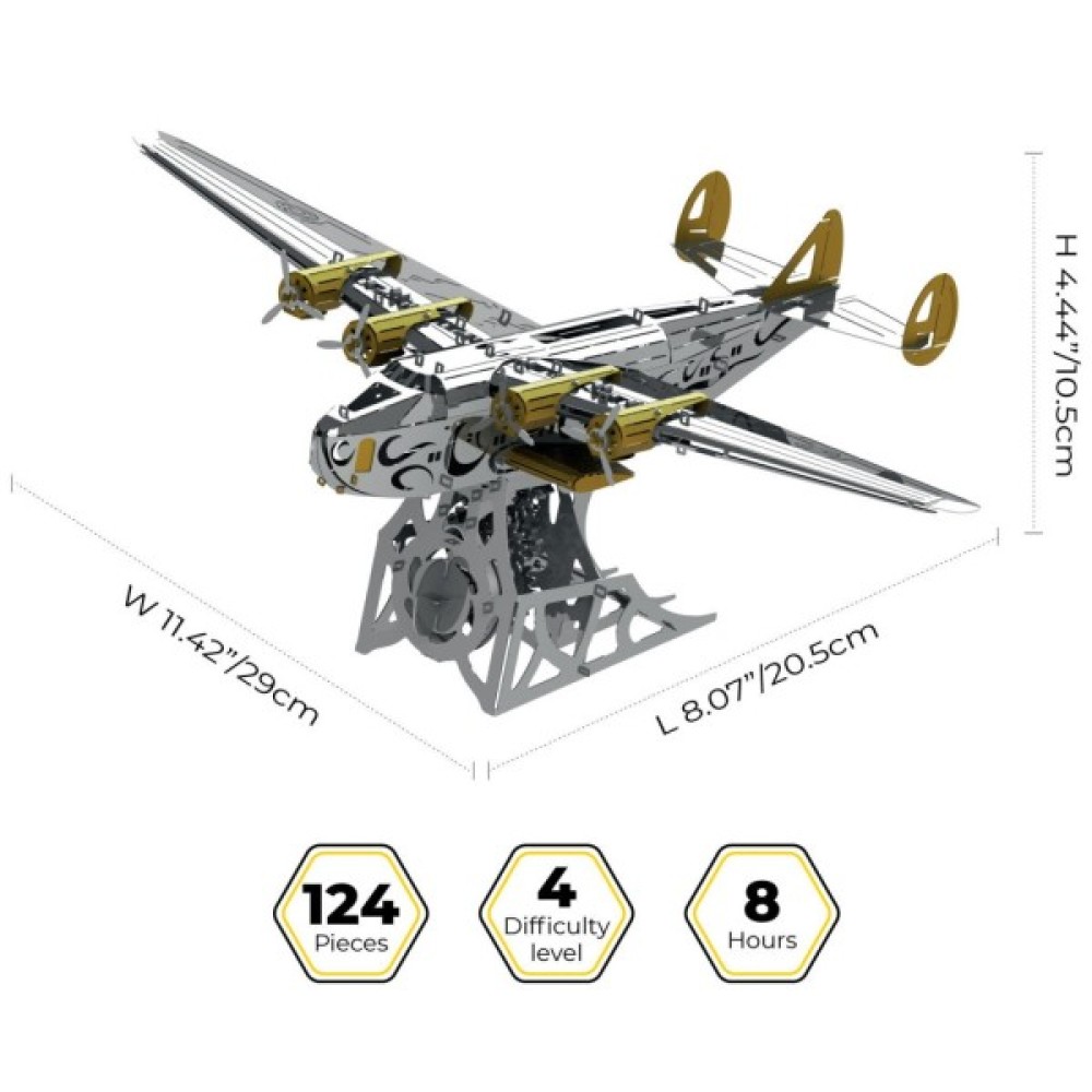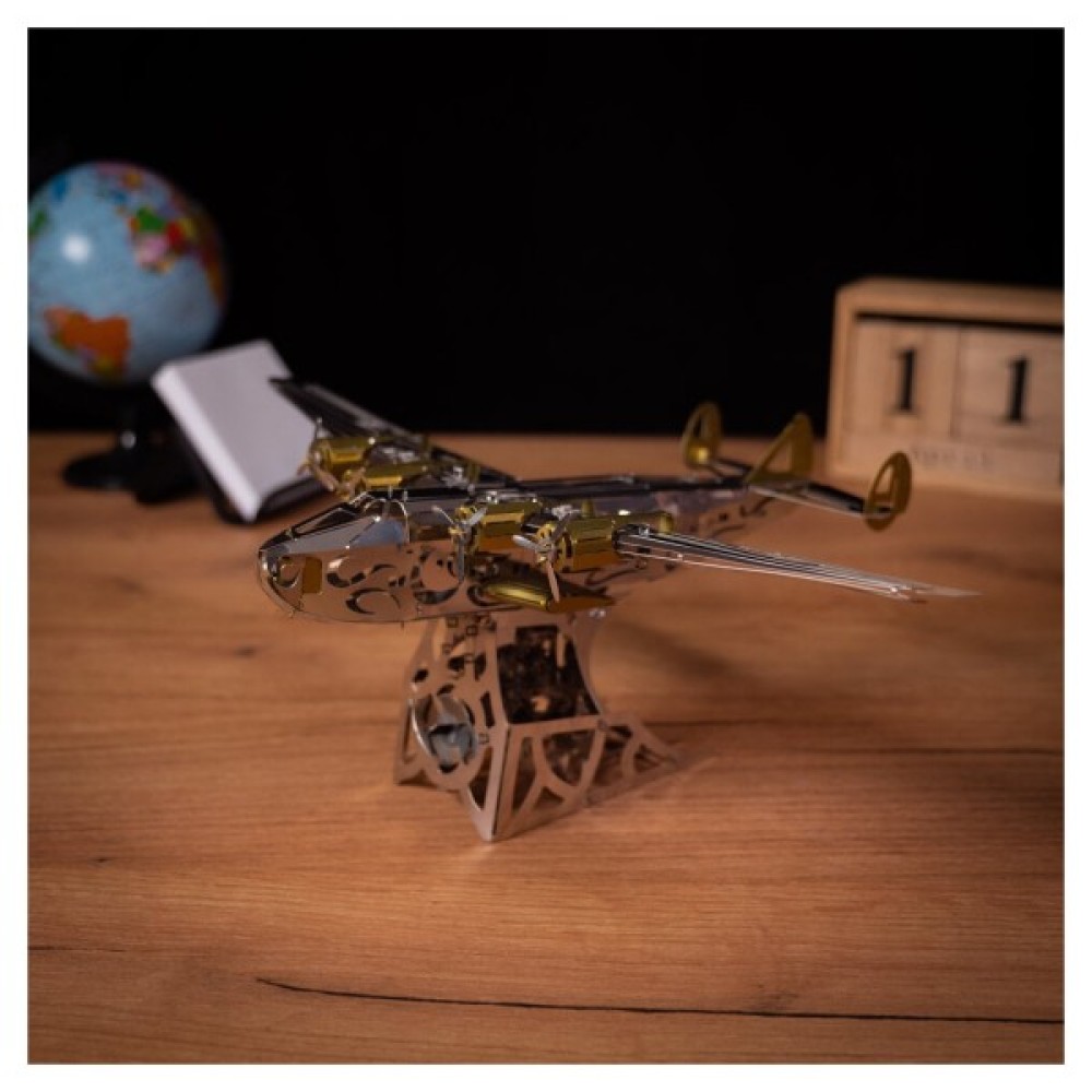 Модель складається з 124 металевих деталей, які збираються у вражаючу конструкцію розміром 20.5х29х10.5 см. Завдяки високій якості матеріалів та детальної проробки кожної деталі, ви отримаєте задоволення від процесу складання. Це не просто конструктор, це справжнє випробування на кмітливість та терпіння, підходить для дітей віком від 14 років, незалежно від статі.