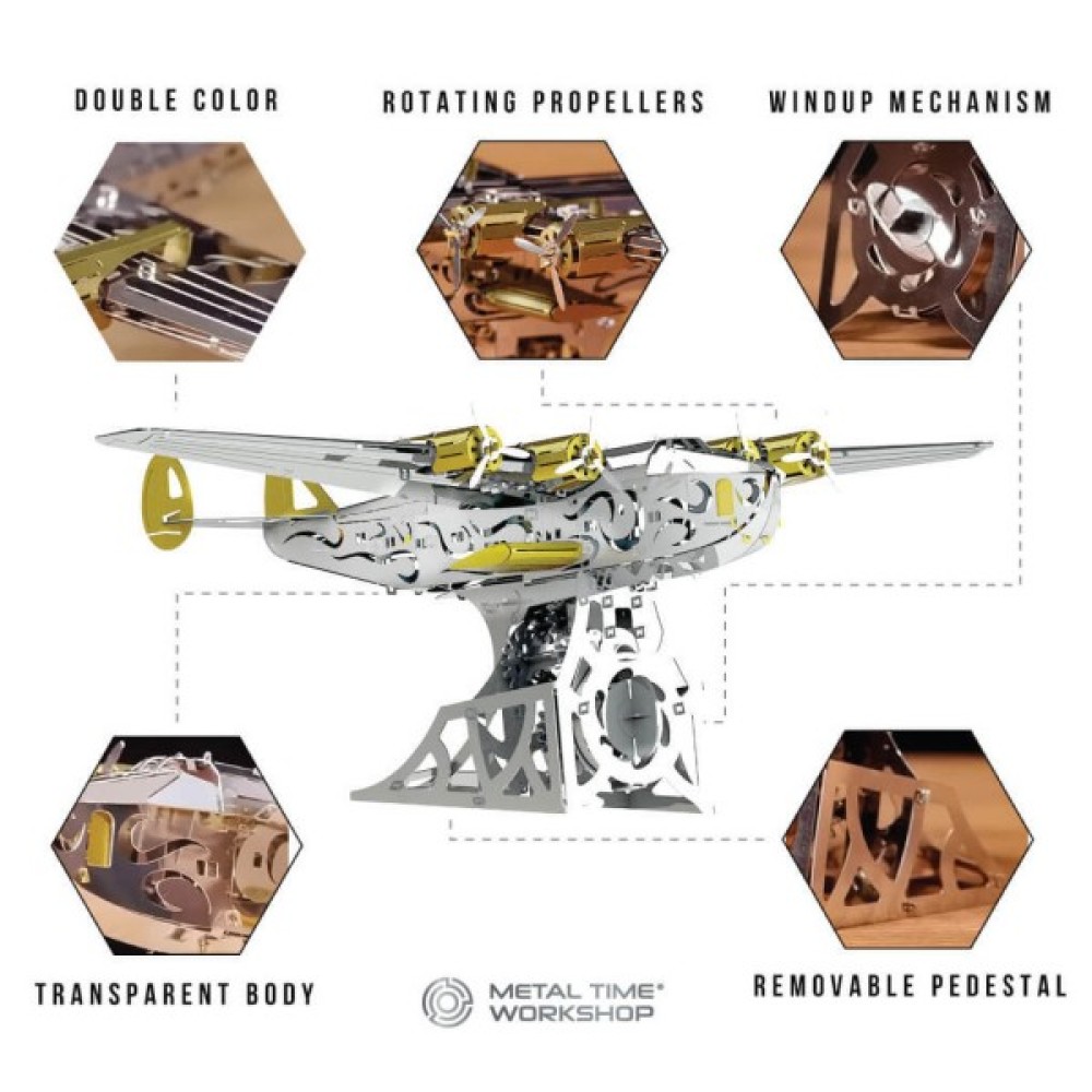 Конструктор Metal Time колекційна модель Splashing Dreamer (MT053) - це чудова можливість для тих, хто захоплюється історією авіації і обожнює створювати щось унікальне власноруч. Цей 3D конструктор, натхненний легендарним літаком Boeing 314 Clipper, пропонує вам опинитися в епосі великих авіаподорожей. Мініатюра повітряного транспорту стане чудовою прикрасою вашої колекції або чудовим подарунком.
