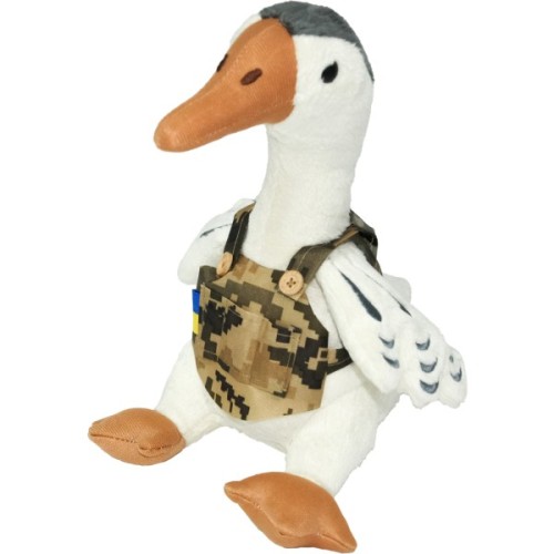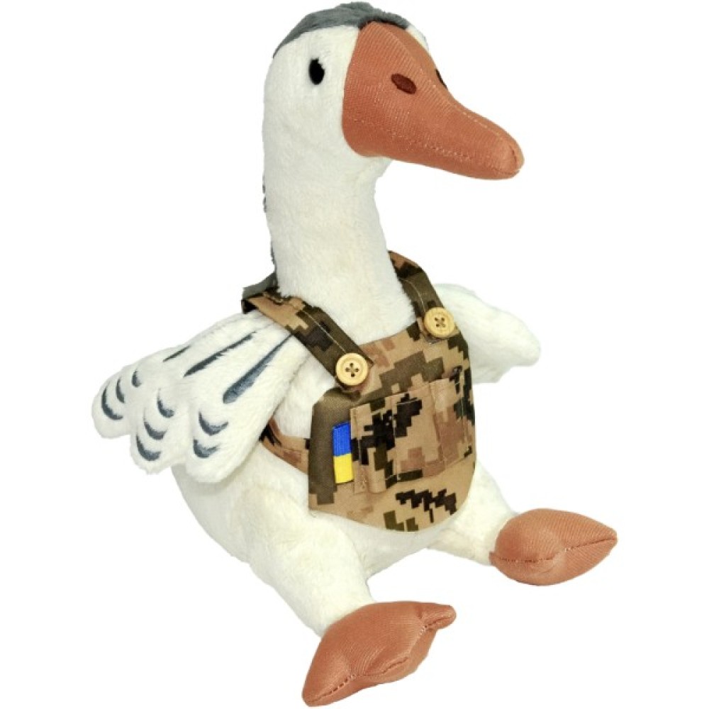 Іграшка Гусак Захисник, Tigres – дизайнерська іграшка у плитоносці Гусак одягнений в імпровізовану плитоноску, прикрашену прапором України. Крила Захисника оздоблені вишивкою. Завдяки незвичним обладункам, ця іграшка відрізняється від інших. З Захисником малюк почуватиметься в безпеці, а для дорослого – гусак стане оригінальним сувеніром.