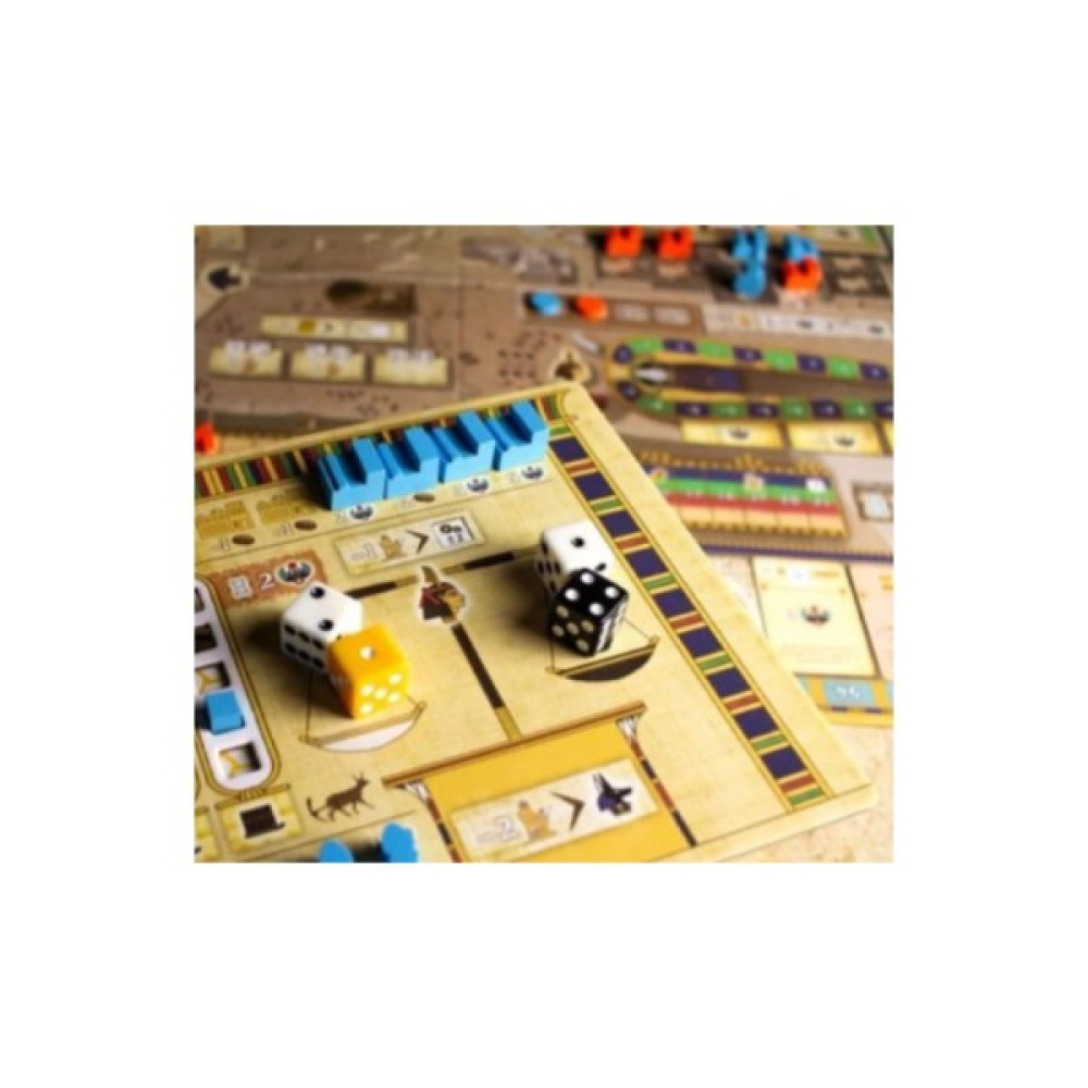 Гра пропонує зануритися у цікаву економічну стратегію, де кожен гравець може відчути себе частиною цієї древньої культури. Завдяки різноманітній комплектації, включаючи 34 жетони папірусу, вапняку, хліба та граніту, а також 25 жетонів золота, створюється багатий світ єгипетських ресурсів. Не менш важливими складовими є 21 жетон писаря та 16 жетонів віри, які допомагають гравцям відчути атмосферу жертвоприношень.