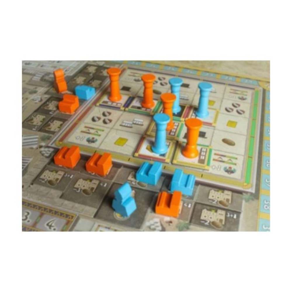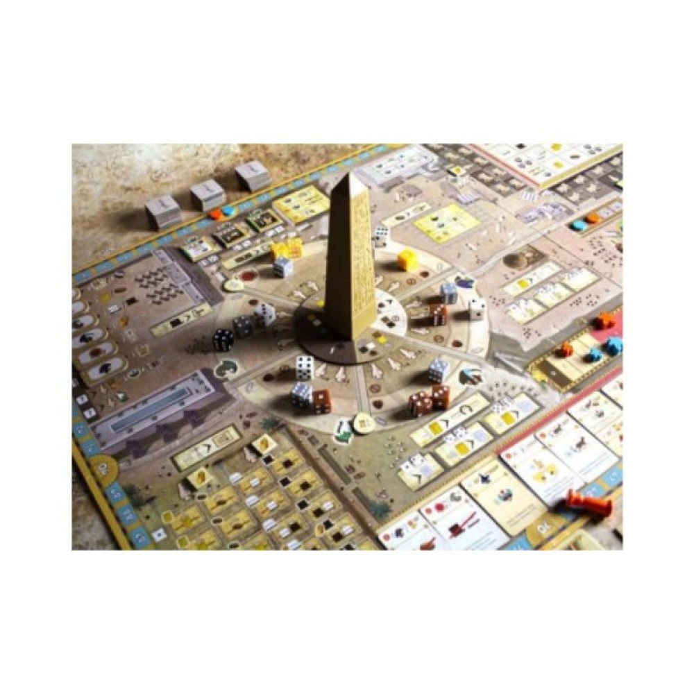 Комплектація 1 ігрове поле; 1 колесо обеліска; 1 обеліск; 34 жетони папірусу (номінал від 1 до 5); 34 жетони вапняку (номінал від 1 до 5); 34 жетони хліба (номінал від 1 до 5); 34 жетони граніту (номінал від 1 до 5); 25 жетонів золота; 21 жетон писаря; 16 жетонів віри; 2 маркери підрахунку; 6 бонусних жетонів Гора; 27 жетонів колон; 26 кубиків (5 чорних, 5 білих, 5 коричневих, 5 жовтих, 6 сірих); 4 планшети гравців; 4 пам'ятки; 40 фішок будівель; 32 фішки колон; 32 маркери виробництва; 24 фішки статуй; 4 мар