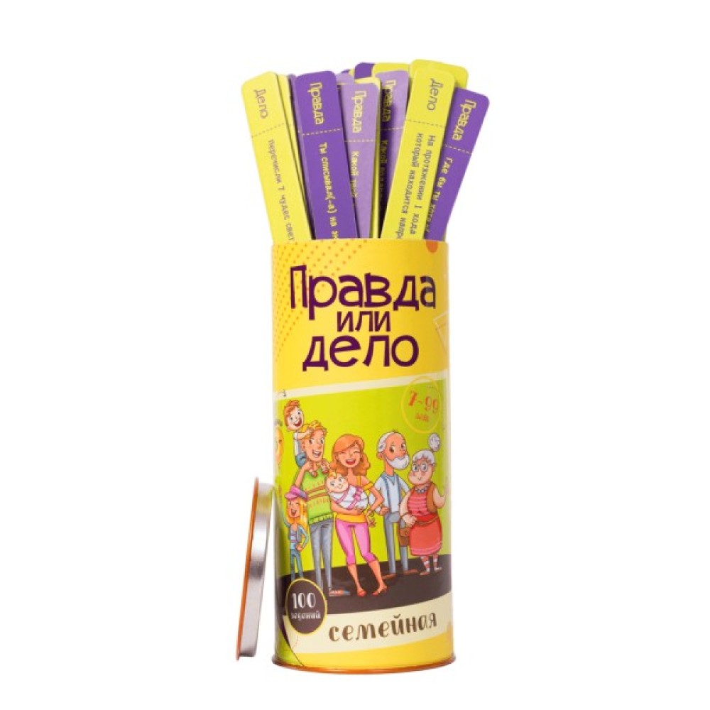 Тематично гра базується на словах та числах, що додає їй не тільки розважального, а й пізнавального характеру. Змагайтеся у компанії від 3 до 7 і більше гравців, кидаючи виклик одне одному й відкриваючи нові горизонти творчості. У комплекті є 100 захопливих завдань: 50 на виконання різноманітних дій та 50 запитань, які спонукають до прояву креативності та сміливості. Вибір між "Правдою" та "Дією" додає грі елемент інтриги та несподіванки, ставлячи гравців у різноманітні ситуації, які потребують швидкої реакції та допитливого розуму.