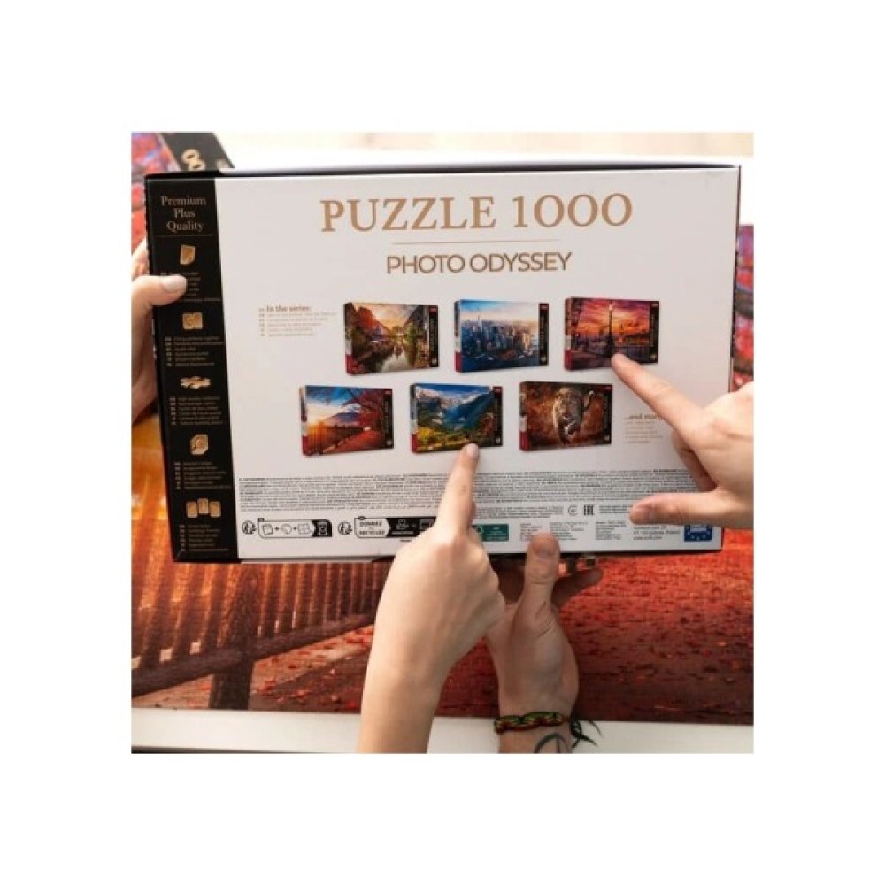 Пазли на 1000 елементів. У складеному вигляді розмір картинки складає 68х48 див. Висока якість, насиченість кольорів і безпеку при складанні пазлів забезпечує спеціальний каландрировані картон, який відбиває світло і покритий екологічними фарбами.
