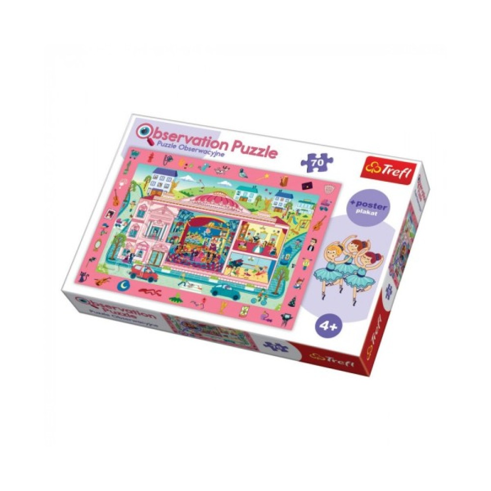 Оглядовий Пазл Trefl Відвідуємо оперу знайомить малюка з таємничим, чудесним і захоплюючим світом театру. Подивися, яке цікаве місце, скільки всього незвичайного і нового тут можна побачити, яких людей можна зустріти. Як ти думаєш, що роблять люди в незвичайному одязі на центральному узвишші?