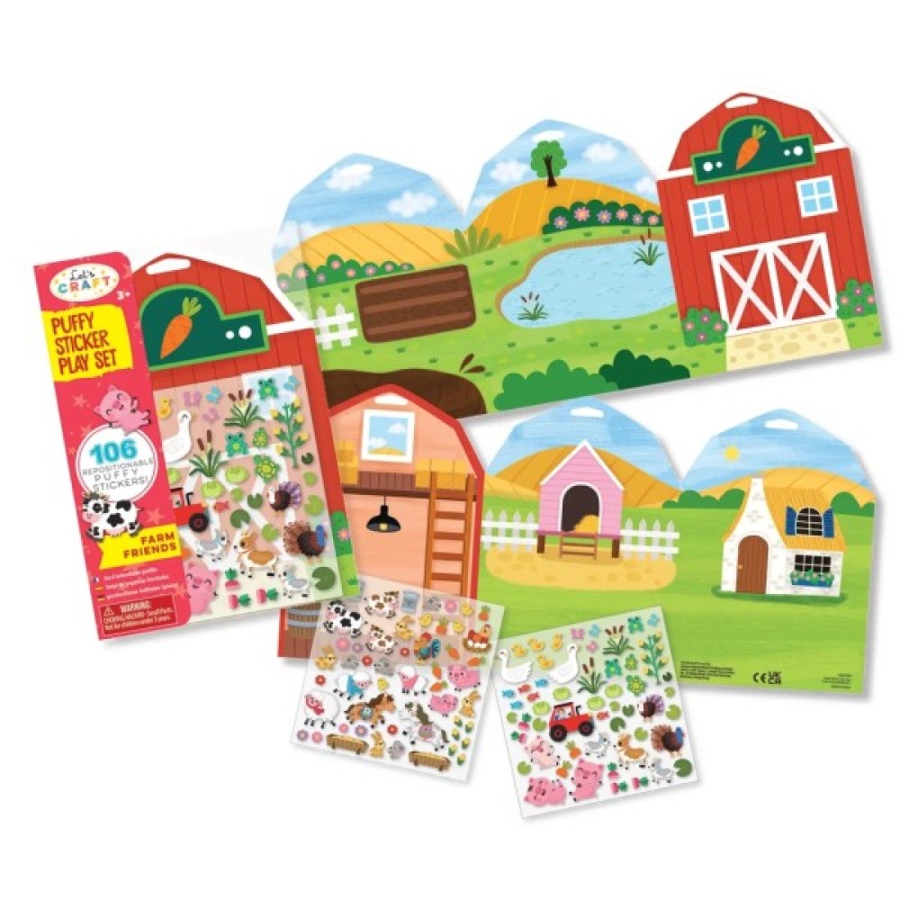 В комплекті: понад 100 багаторазових об’ємних наліпок та двосторонній фон.