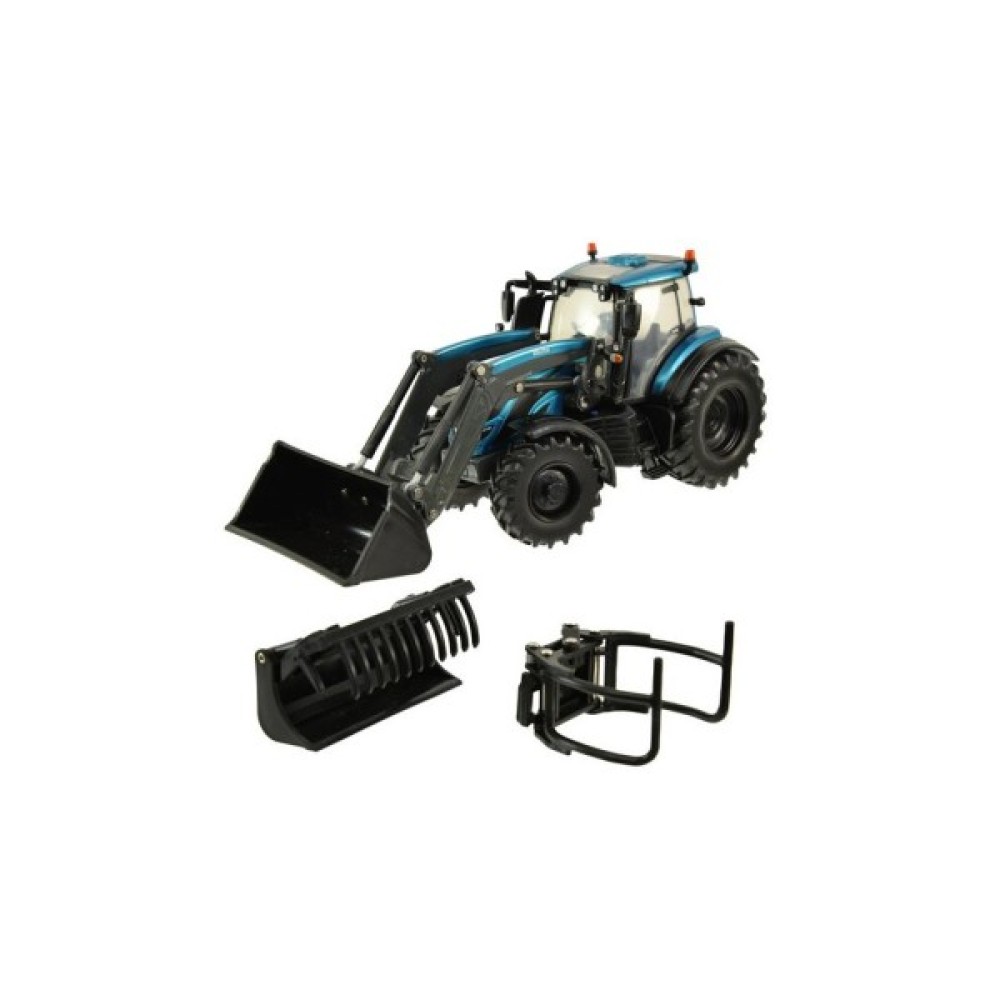 Представляємо масштабну модель Valtra T234 бірюзового кольору із фронтальним навантажувачем. Чудово деталізована копія трактора зі знімною кабіною. Видима гідравліка піднімає та опускає фронтальний навантажувач, при цьому ківш може перекидатися незалежно. У комплект також входять ще два взаємозамінні аксесуари, а також шини з великим протектором та робоче рульове колесо.