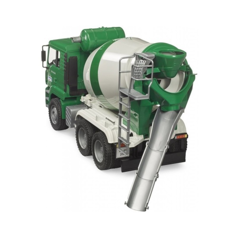 Всі діти люблять спостерігати за роботою будівельної техніки. Особливо цікаво дивитися на машини-гіганти, наприклад, як бетонозмішувач обертає барабан з бетоном. Іграшка Bruder бетонозмішувач MAN TGA з відкидною кабіною (02739) підкорить своєю реалістичністю та продуманістю маленьких і великих любителів будівельної техніки та марки MAN. Виготовлена в масштабі 1:16, ця модель є точною копією бетонозмішувача оригіналу. Крім чудово деталізованого зовнішнього вигляду, ця іграшка може похвалитися ще й функціональністю: її кабіна відкидається, і можна розглянути блок двигуна. Бетонозмішувач оснащений тривісною підвіскою, завдяки якій вона досить вантажопідйомна. У машини прозоре скло в кабіні, двері відчиняються, дитина може пофантазувати і стати водієм, використовуючи фігурки bWorld. У бетонозмішувача відкидні бічні дзеркала, завдяки чому такій габаритній машині простіше паркуватися. Залийте через воронку в барабан-бетонозмішувач розчин, який він буде обертати. Поверніть ручку і розчин виллється через жолоб, який можна повернути в необхідне положення або подовжити. Збоку на барабані є сходи, щоб водій міг піднятися і заглянути в бочку оцінивши кількість розчину, що залишився.