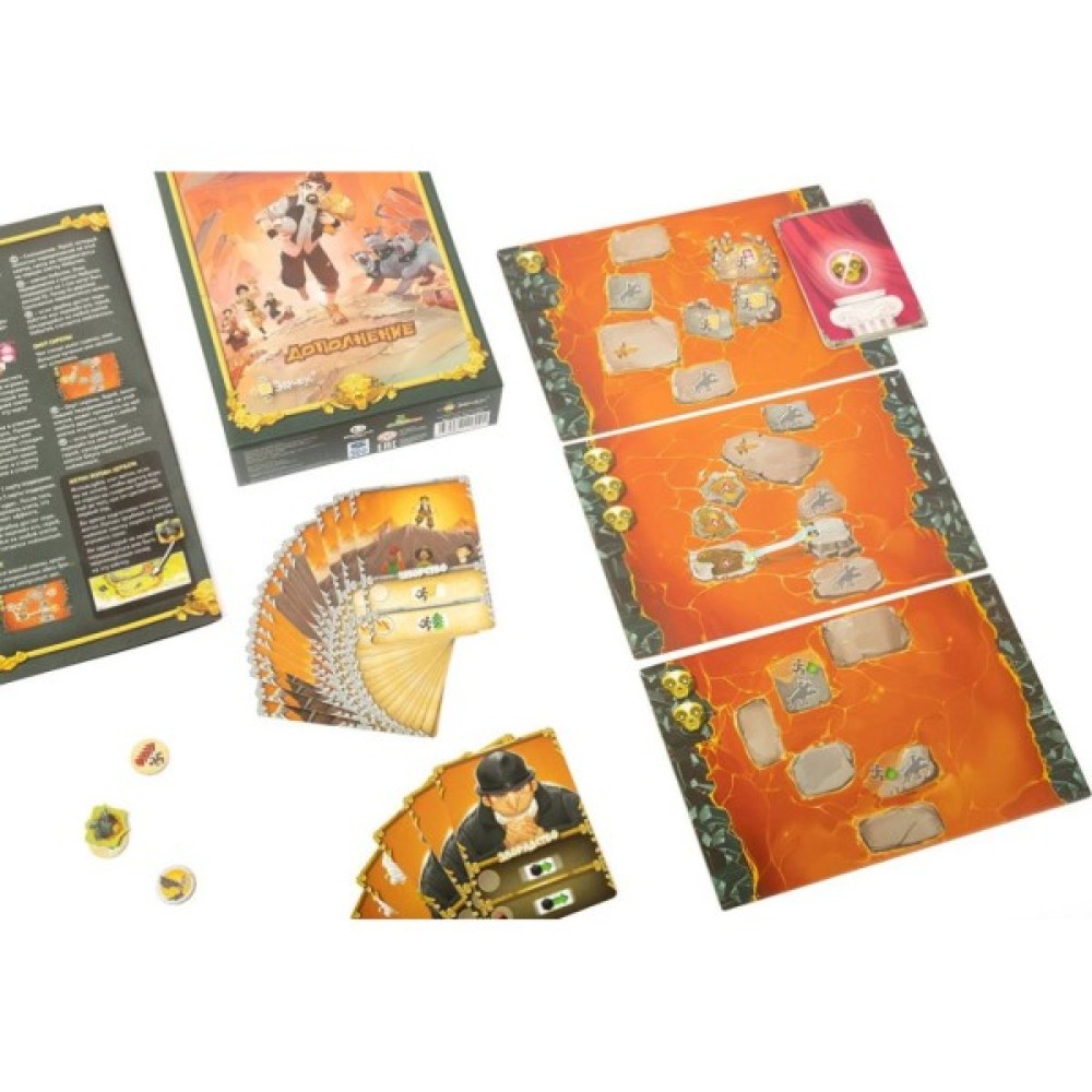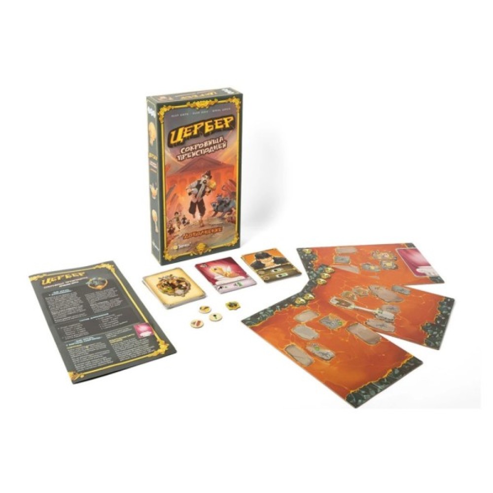3 нові двосторонні ділянки ігрового поля; 16 карт підтримки; 6 карт підступності; 7 карт скарбів; 3 жетони гарпій; 1 жетон Лігва Цербера; Правила гри.