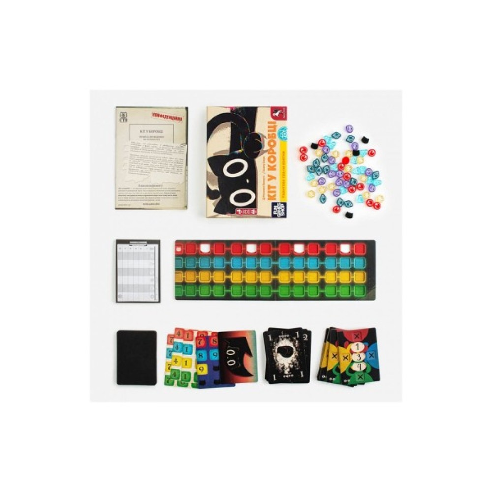 Комплектація гри вражає своєю якістю: до набору входить 1 поле дослідження, 5 планшетів гравців, 64 жетони, 1 бланк результатів та книга правил українською мовою. Пориньте у світ логічних та розважальних викликів, де кожен хід стає новою історією!