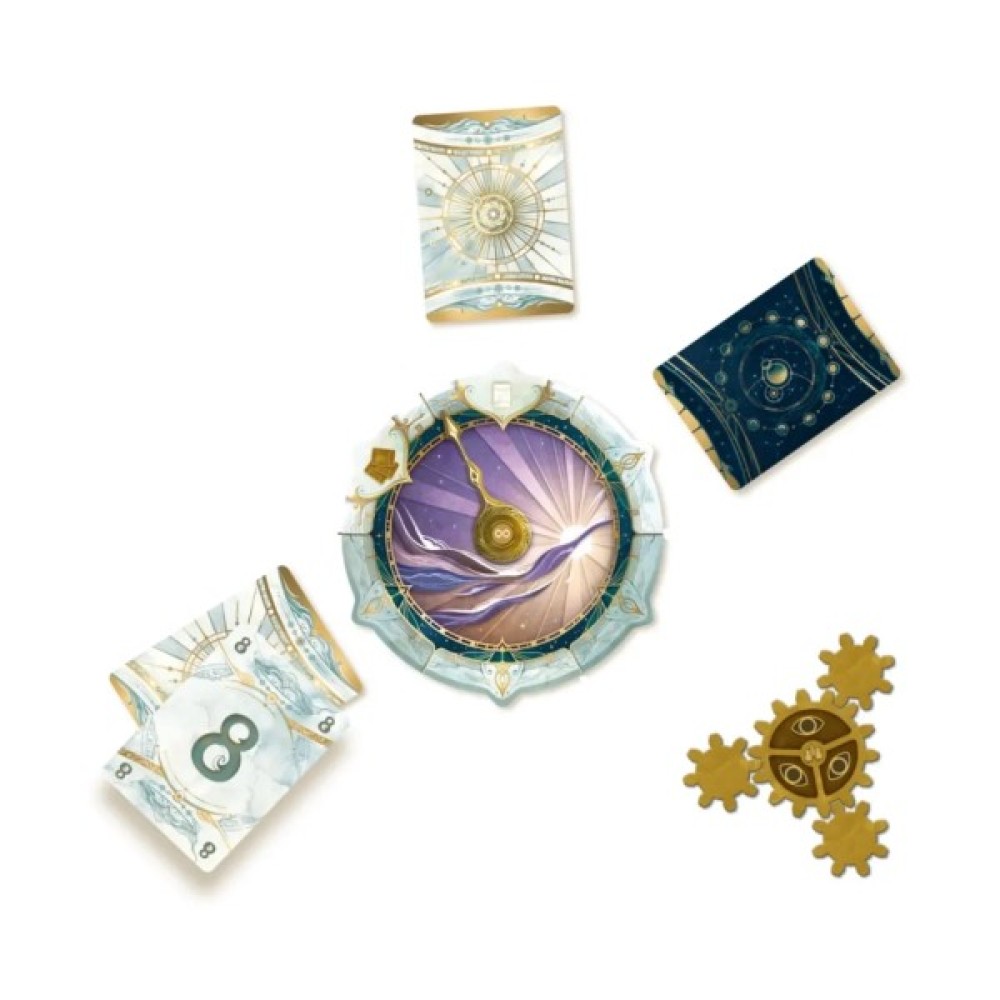 У комплектації гри 12 карт сонця та 12 карт місяця, які потрібно стратегічно викладати навколо чарівного годинника. Кожен із 10 конвертів розділів відкриє нові виклики, в яких ваша команда зіткнеться з унікальними завданнями, розділеними на три ключові фази: обговорення, розміщення та відкриття. Особливі жетони нагадування та жетони бонусів допоможуть підказати правильну стратегію. Атмосферне оформлення та чарівний дизайн компонентів створюють затишний простір для сімейного дозвілля.