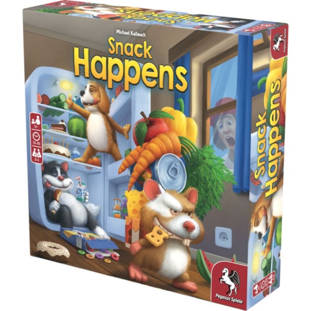 Відкрийте двері у світ смакових пригод із Настільною грою Pegasus Spiele Snack Happens (англ.) (PS218)! Ця гра стане ідеальною розвагою для дітей та всієї родини, пропонуючи зануритися в захопливий світ їжі та напоїв. Ви будете здивовані, як ваші улюблені хатні тварини — від кішок до папуг — влаштовують справжнє полювання на закуски в холодильнику.