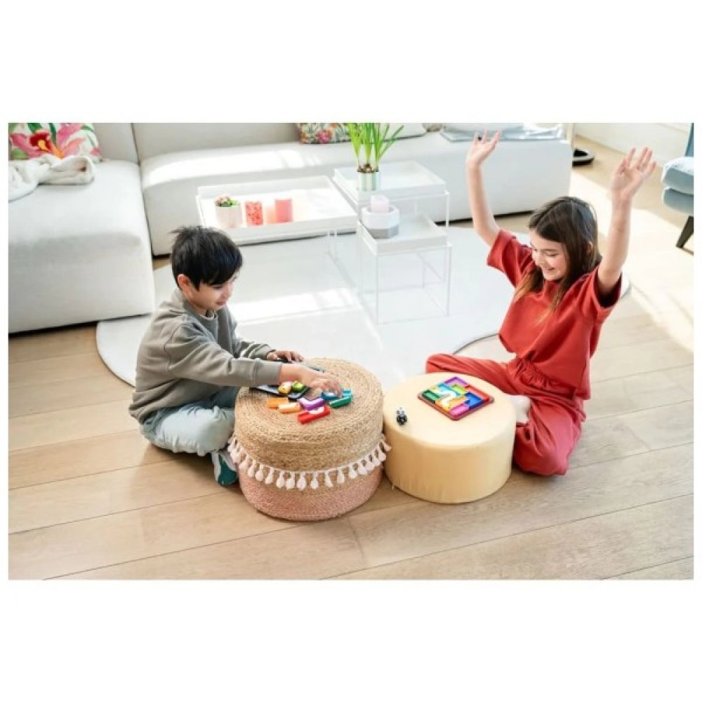 Комплектація включає 2 сітки "Геній. Стежки", 2 набори двосторонніх деталей пазла, набір ігрових кубиків з білим і чорним відтінками та 4 карти рівнів. Завдяки п'яти динамічним рівням складності, гра пропонує нескінченні варіації зі стратегічними викликами, що робить її цікавою як для новачків, так і для досвідчених гравців. Ваша головна мета – заповнити ігрове поле барвистими елементами пазла швидше, ніж ваш суперник.