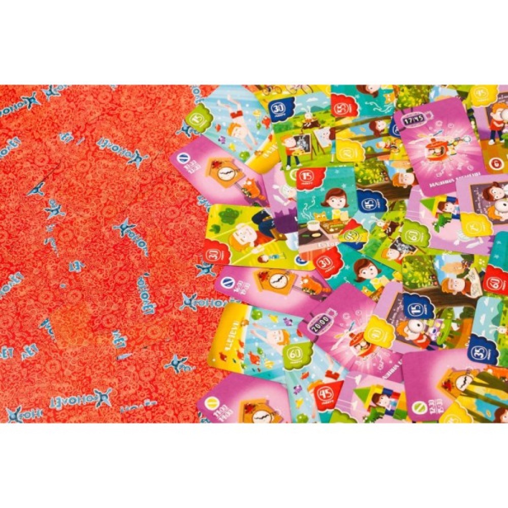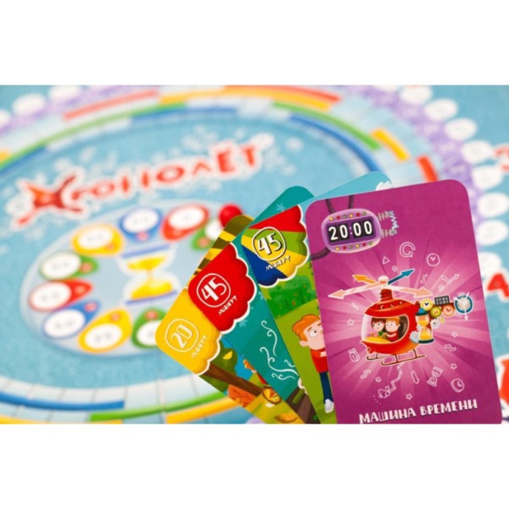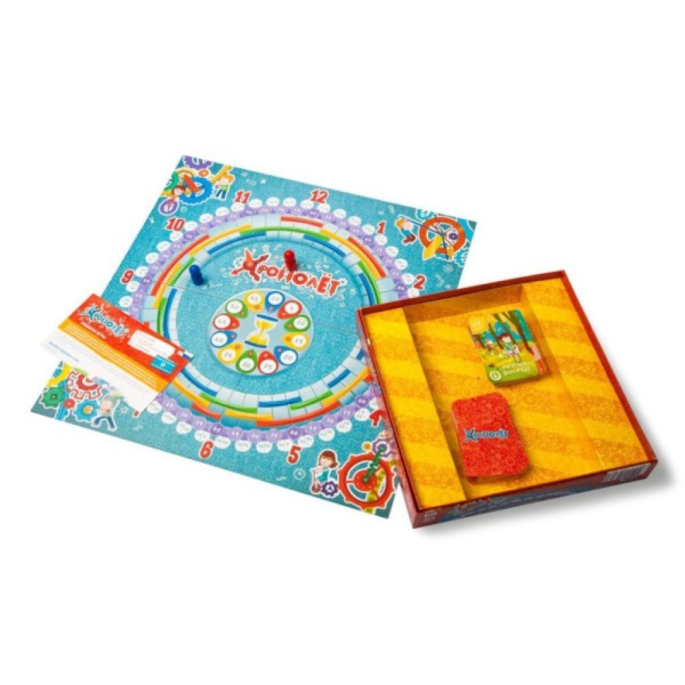Комплект гри включає 84 картки, що позначають завдання та події, які дозволяють дітям на практиці зрозуміти і застосувати знання про час. Ілюстровані правила роблять процес гри простим і зрозумілим, в той час як фішки додають елемент змагання і інтриги.