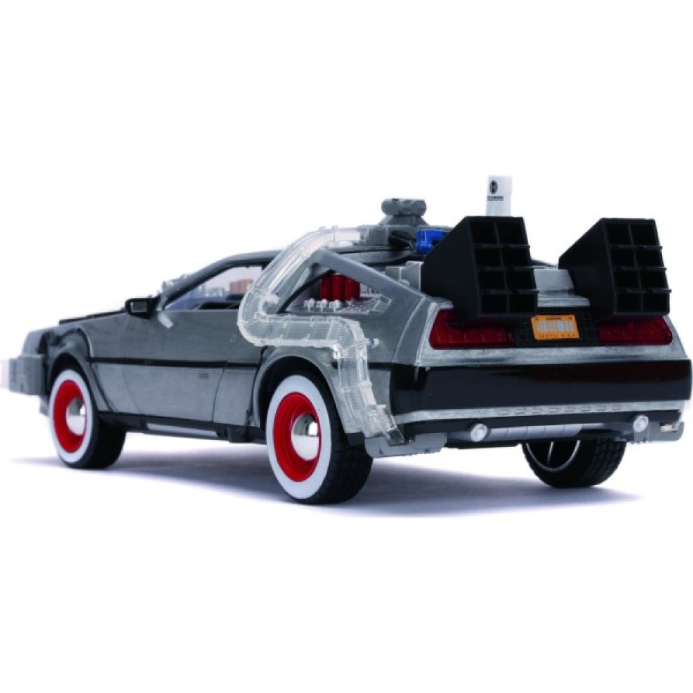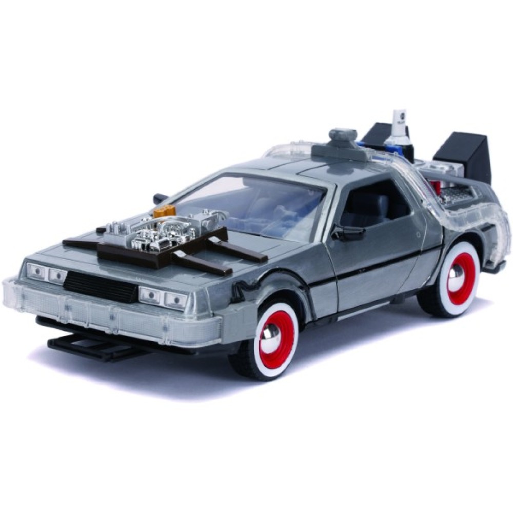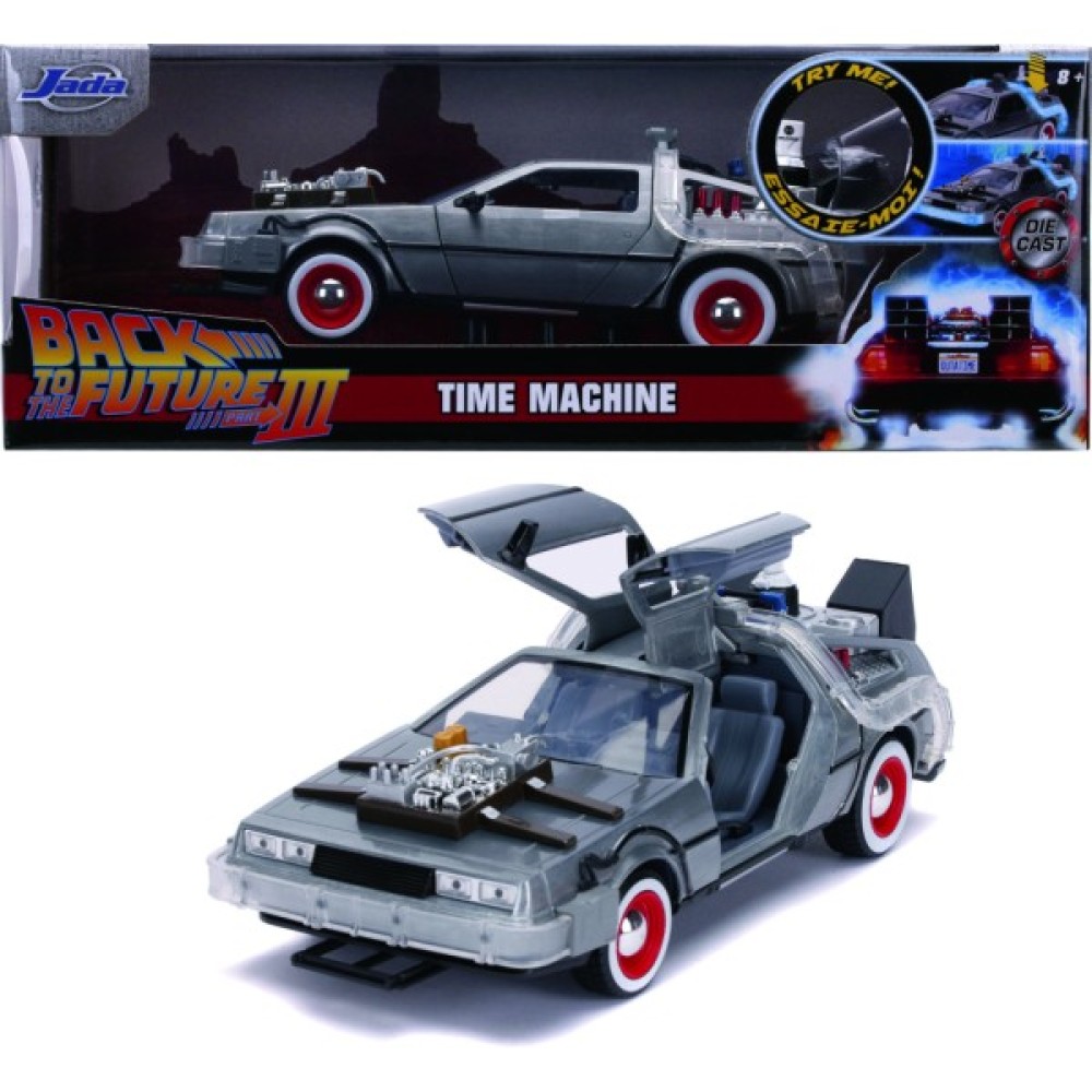 Компанія Jada представляє ліцензійну машину часу з американської фантастичної комедії режисера Роберта Земекіса "Назад у майбутнє", частина 3. Це зменшена копія легендарної машини, за основу якої взято автомобіль DeLorean DMC-12.