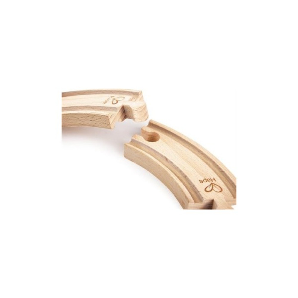 Більше рейок – більше веселощів! Розширте дерев'яну залізницю Hape за допомогою додаткового набору коротких вигнутих рейок. У комплекті 4 елементи.