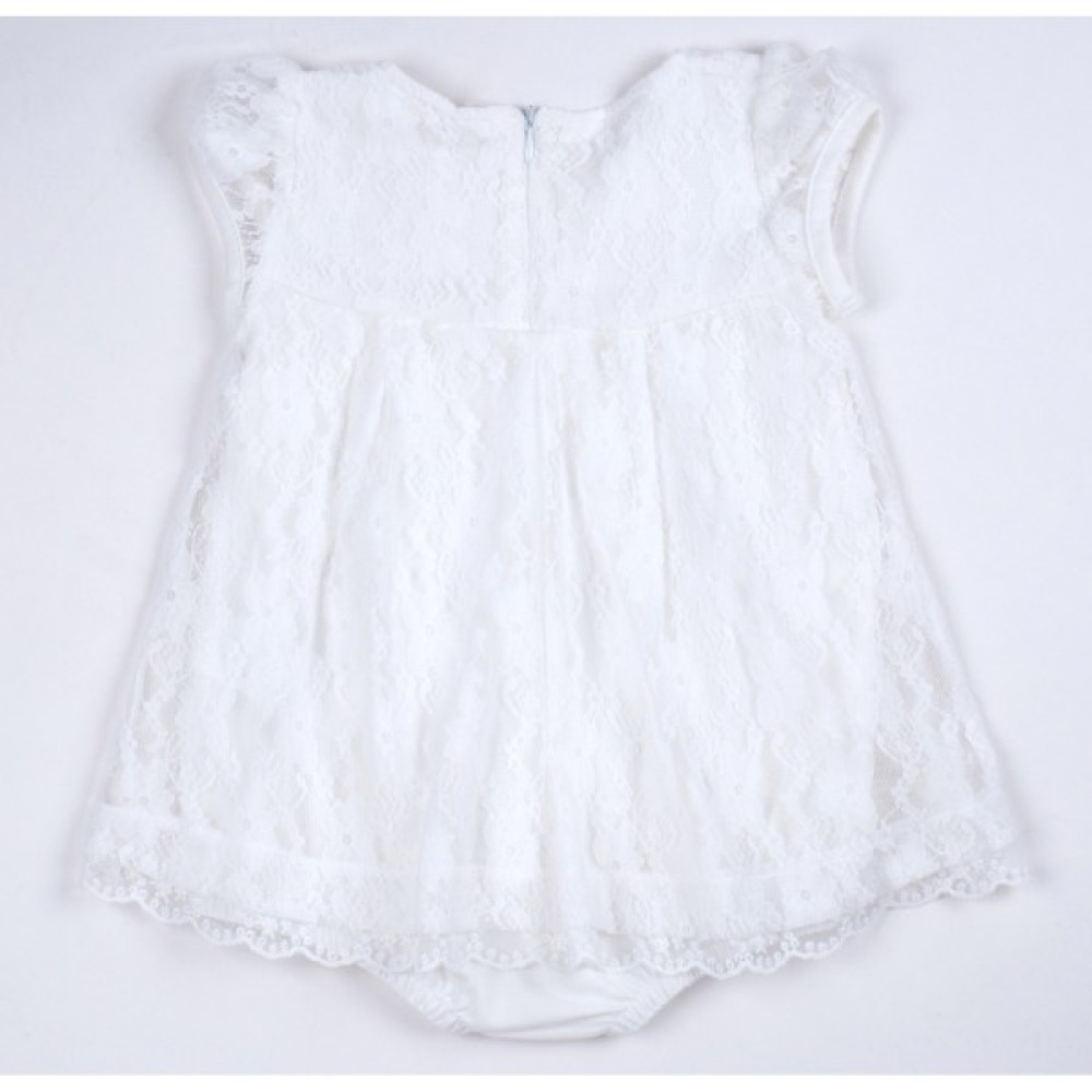 - Нарядний красивий мереживний боді-сукня кремового кольору з ніжним квітковим декором для маленької красуні.