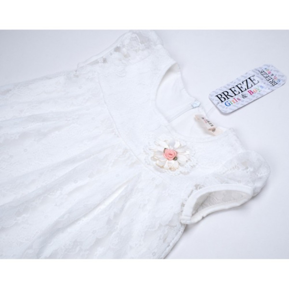 Мереживний трикотажний боді-сукня з квітковим декором для дівчинки.