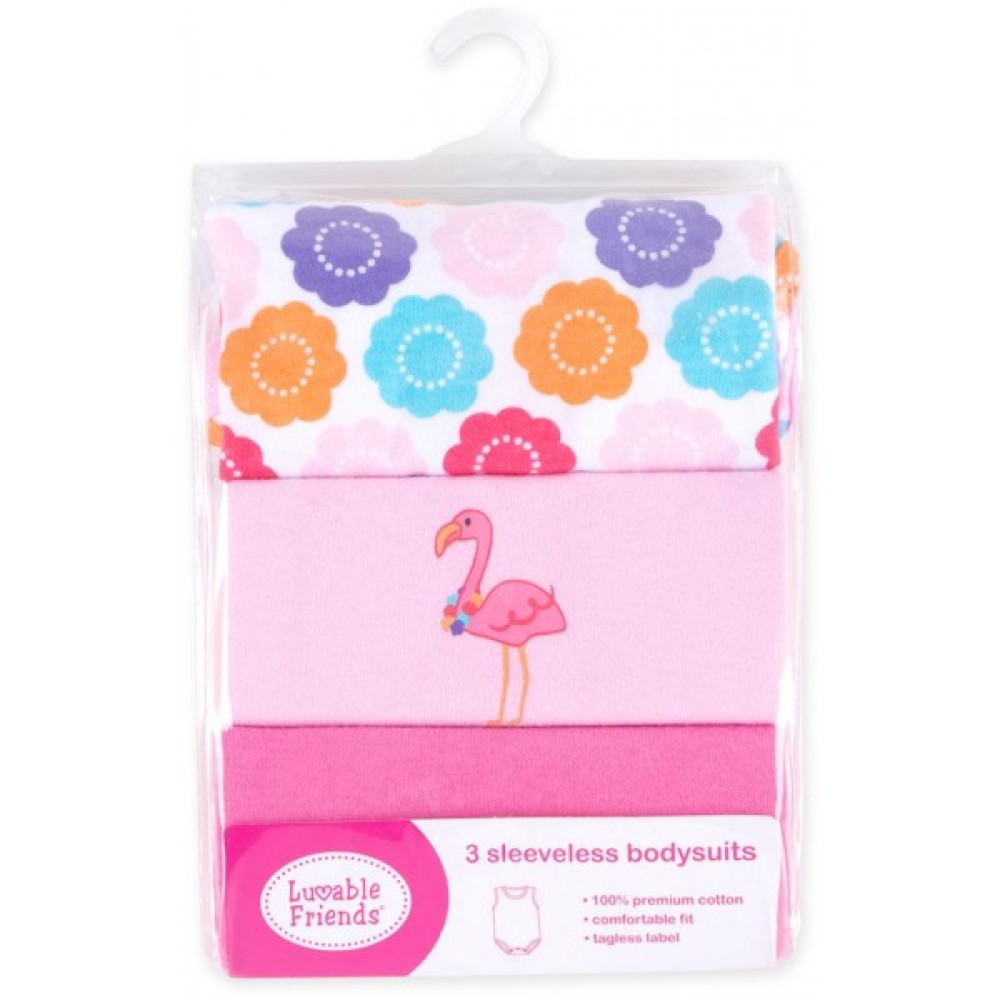 Боді дитяче Luvable Friends 3 шт без рукавів з малюнком для дівчаток (37310.0-3 F)