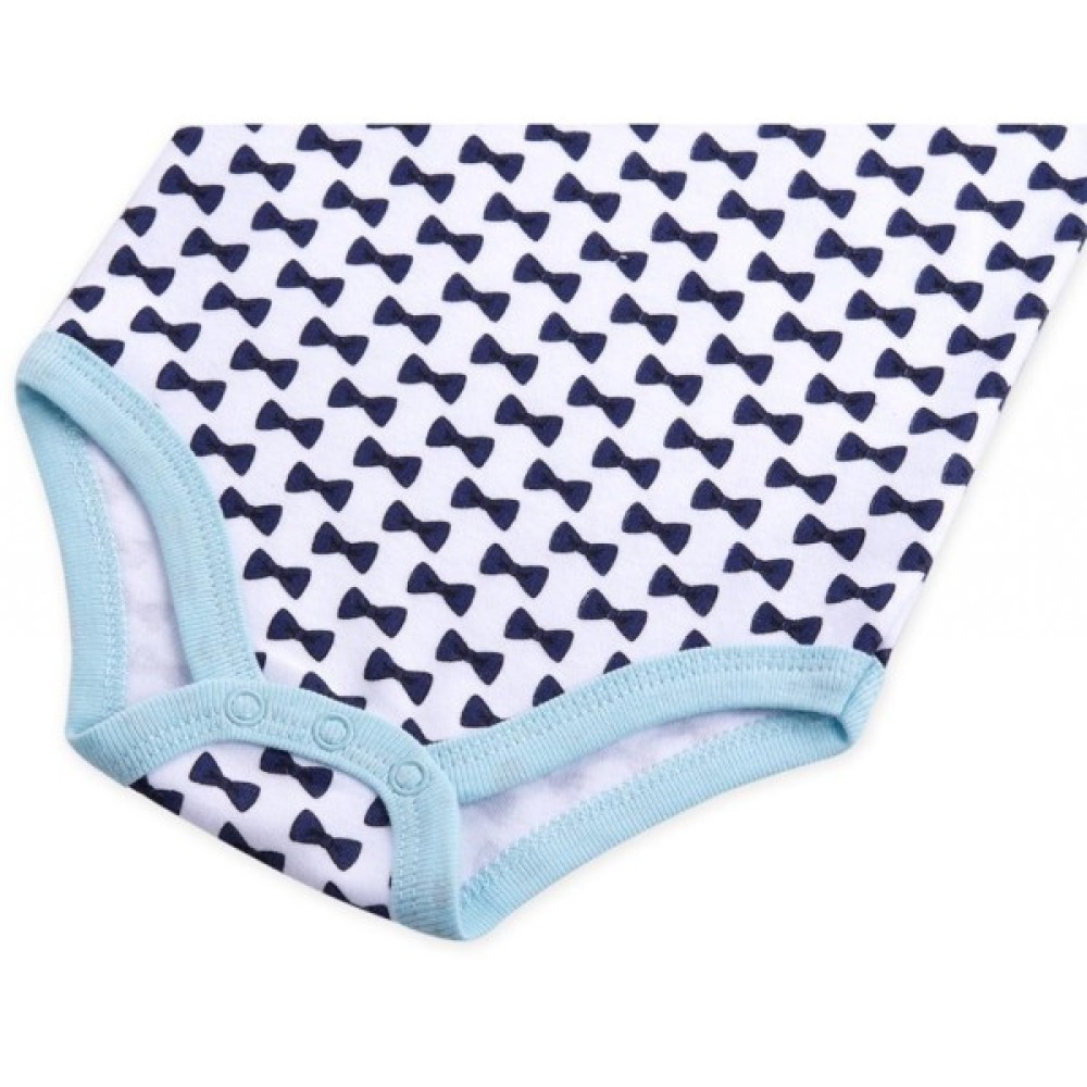 Горловина боді має оригінальний крій у вигляді "саморозкривних плічок", по низу виробу - кнопки для швидкого і легкого переодягання. В якості декору використовуються принти і стильна аплікація. Такий одяг повністю покриває тіло малюка і фіксується між ніжок, забезпечуючи простоту і зручність при перевдяганні та частій зміні підгузників.