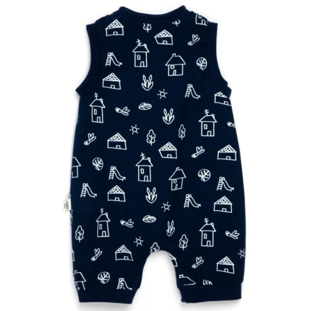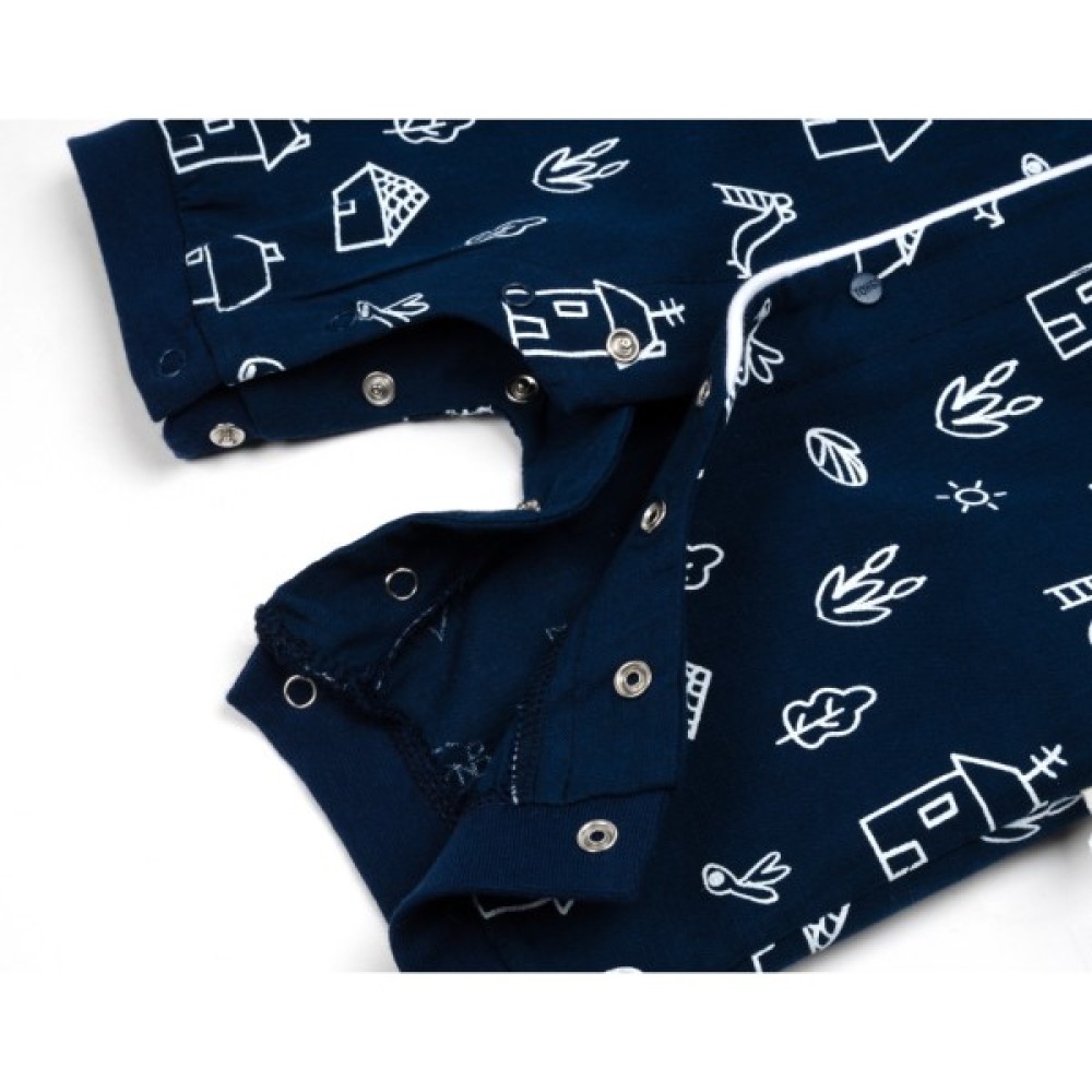 • Ми пропонуємо для вашої дитини симпатичний пісочник темно - синього кольору, прикрашений різними графічними малюнками білого кольору, пошитий з тоненької, натуральної бавовняної тканини (100% бавовна).