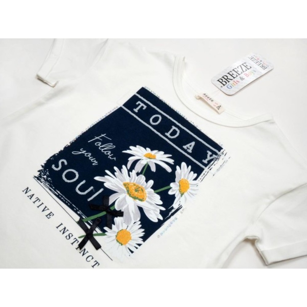 Футболка дитяча Breeze з ромашками (13519-128G-beige)