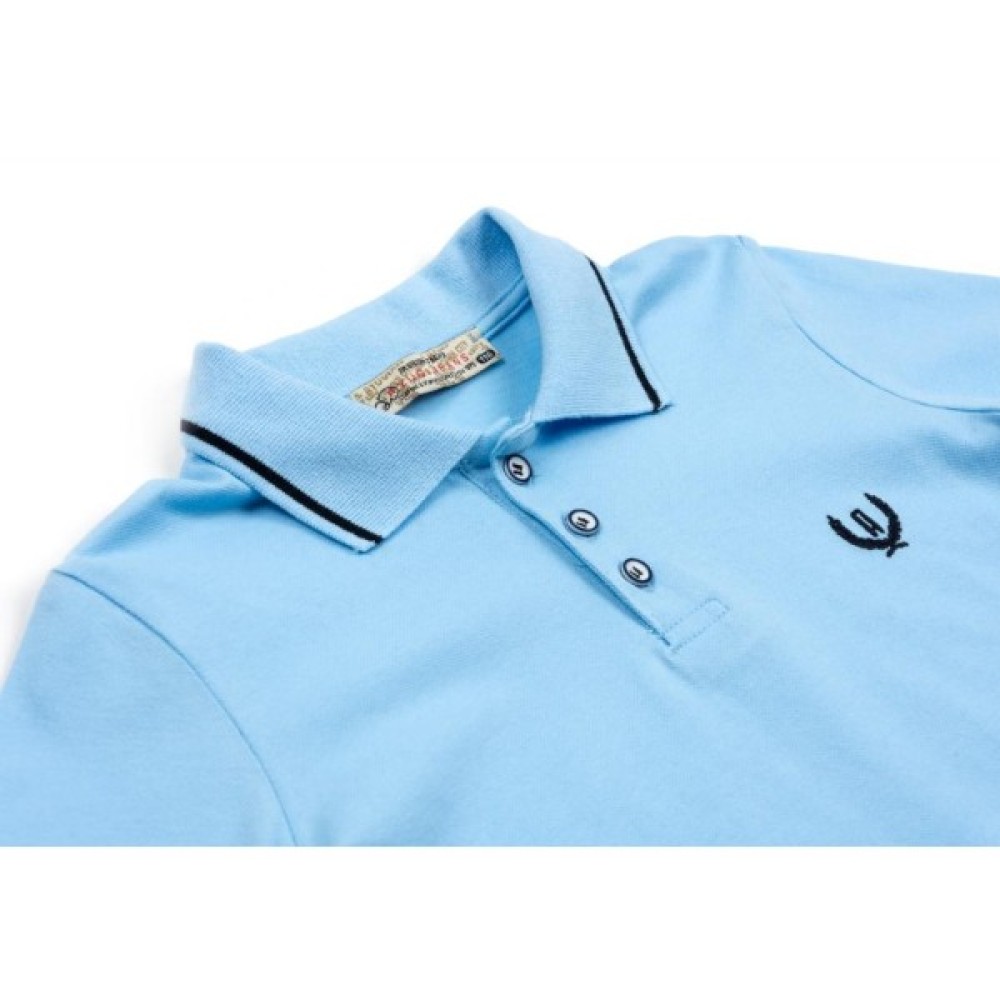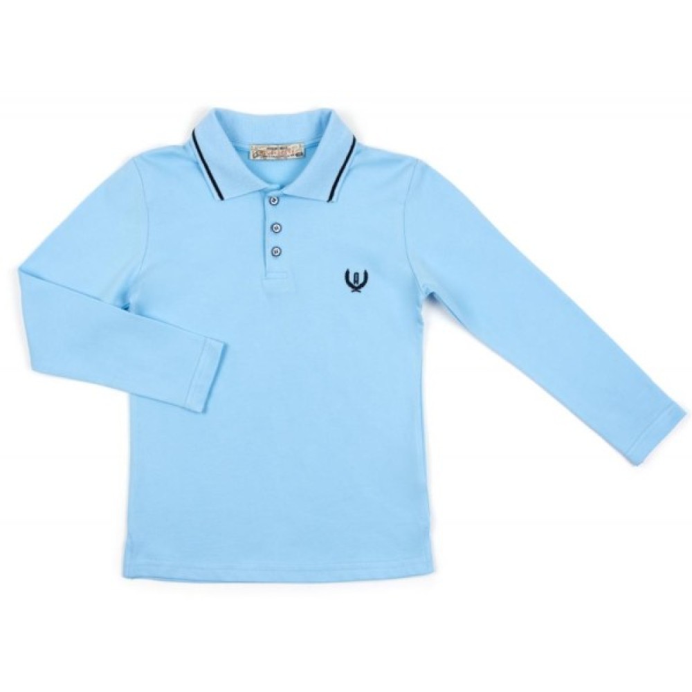 Зручна кофта - поло турецької фірми A-Yugi. Кофта вільного прямого крою, з довгими рукавами, з приємного на дотик турецького трикотажу для хлопчика. Внизу в бічних швах невеликі разрезикі (5 см). Кругла горловина оброблена відкладним коміром з трикотажної гумки з класичною застібкою - планкою на три гудзики. Краї коміра оформлені контрастною смужкою. Рукав трохи звужений до низу. Зліва на грудях вишитий логотип.
