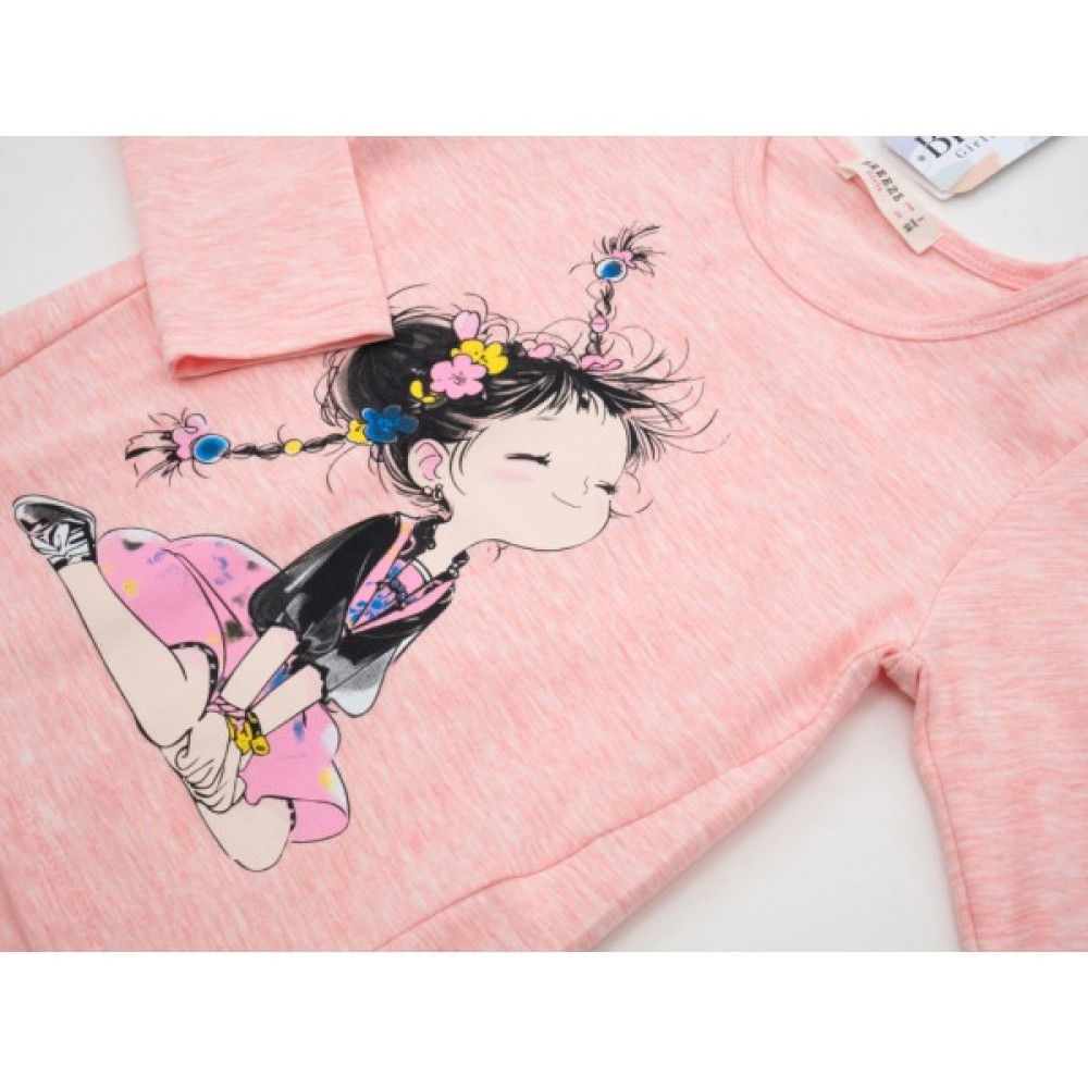 Симпатичний трикотажний лонгслів з дівчинкою та квітами.