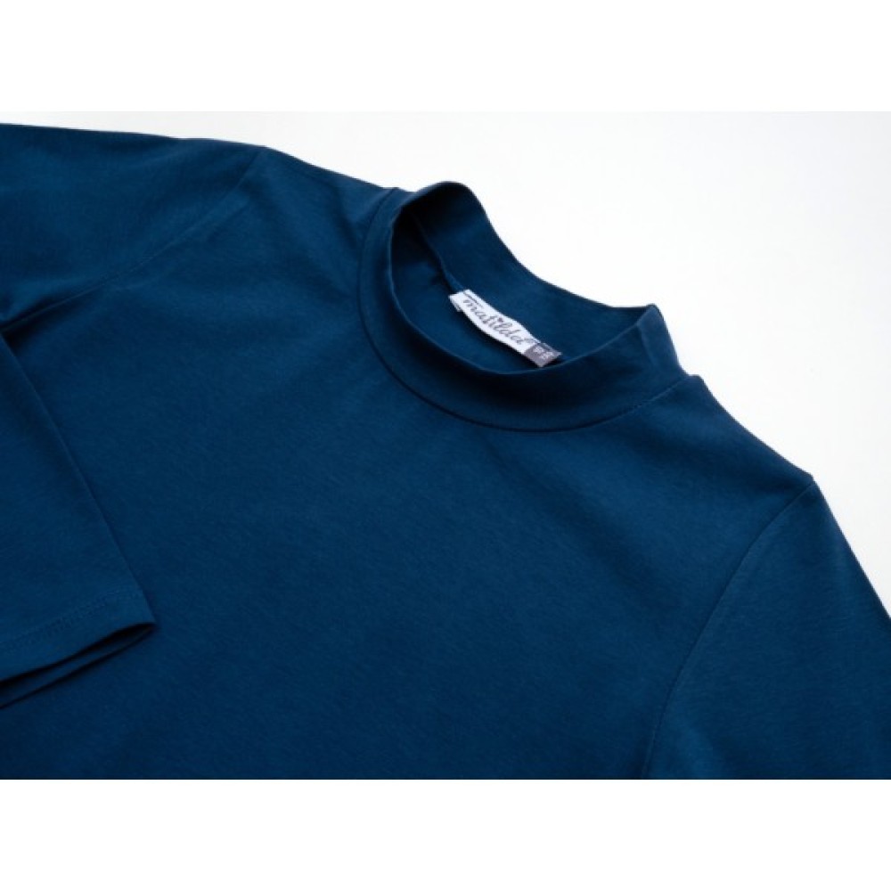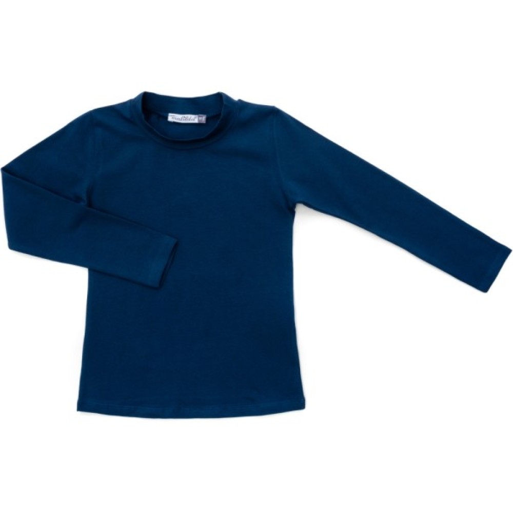 - Затишна, однотонна напівприталена трикотажна модель з невисоким коміром-стійкою та довгими вшивними рукавами для дівчинки.