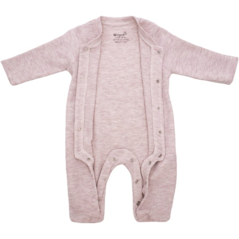 • Чудовий бежевий трикотажний комбінезон-«чоловічок» з зашитими ніжками та довгими рукавами від турецької тм Biorganic, прикрашений ніжною акуратною вишивкою – зручний та незамінний одяг для маленької дитини.