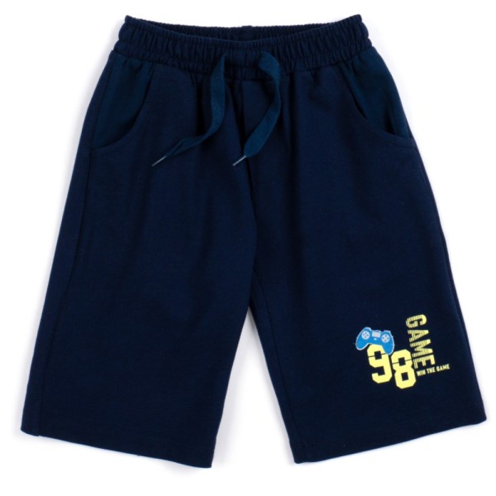 - Чудовий, яскравий літній комплект із якісного, дихаючого, бавовняного турецького трикотажу для юного геймера: яскраво-жовта футболка та темно-сині шорти-бермуди.