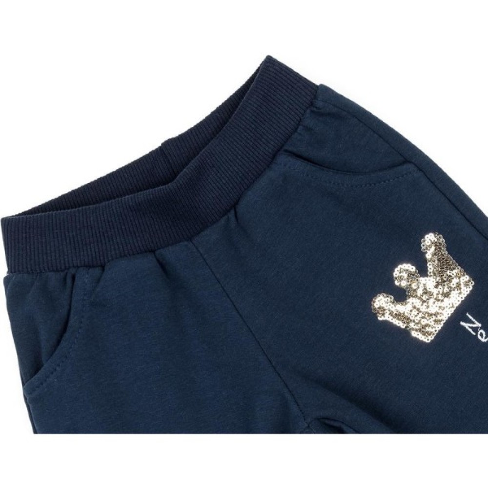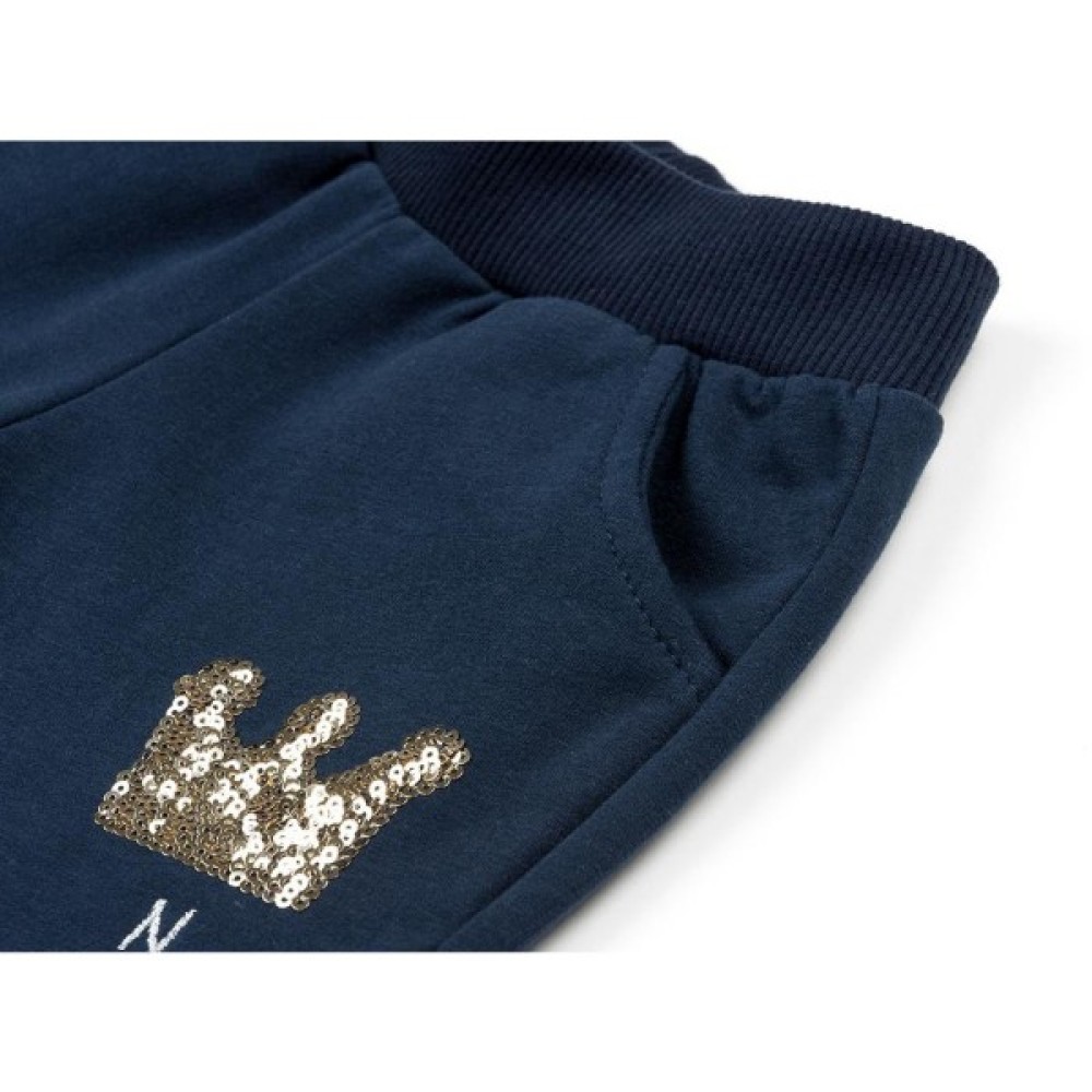 Зручні штанці з двома прорізними кишенями так само прикрашені коронкою з золотих паєток.